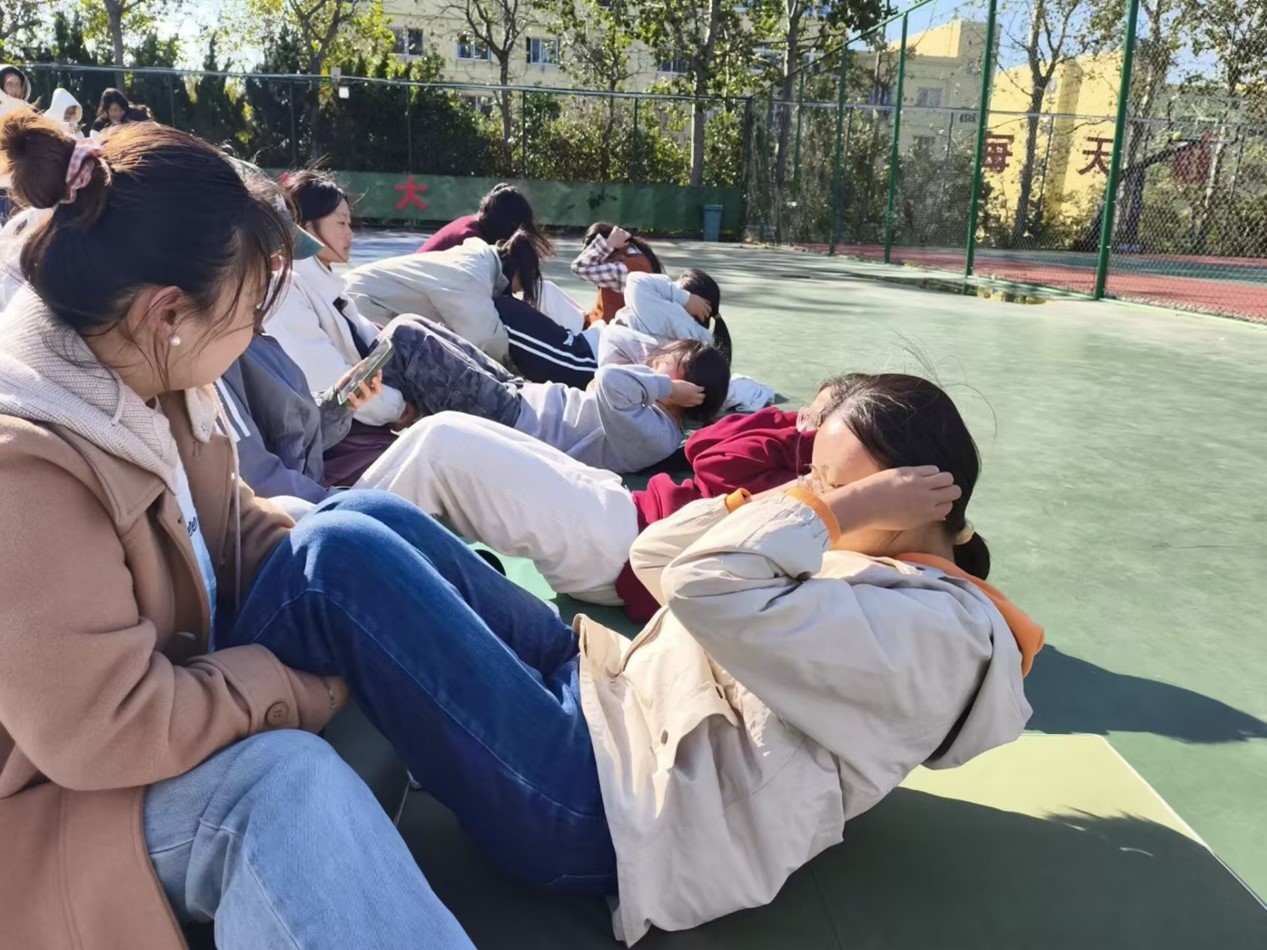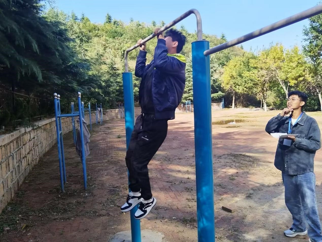 比赛开始前,参赛选手组队来到指定赛场进行热身并有序签到。哨响后,仰卧起坐的女队员们快速起卧,争分夺秒,动作流畅。在引体向上的比赛现场,参赛同学稳抓单杠,手臂带动身体,奋力撑过横杠,呼吸从平稳到急促,双臂从放松到紧绷,每个动作都充满了力量与坚持。