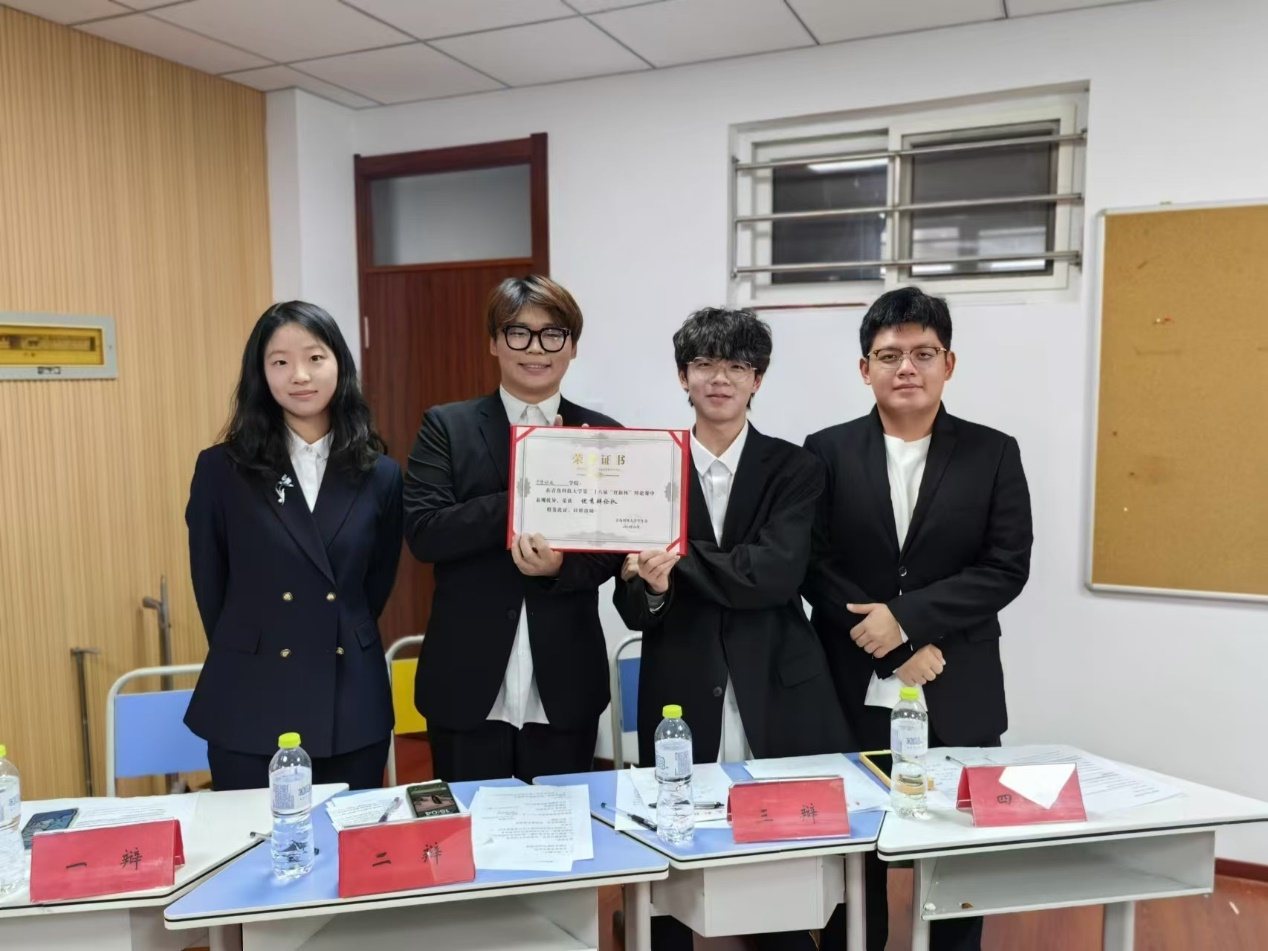 据悉,本次校“育新杯”辩论赛为期一个月,学院团委认真筹备、精心组织辩论比赛,经过初赛、复赛、半决赛紧张激烈的角逐,由唐安琪、闫弘昕、龚宇航、昊悦阳同学组成的学院代表队最终获得2024年校“育新杯”辩论赛冠军。