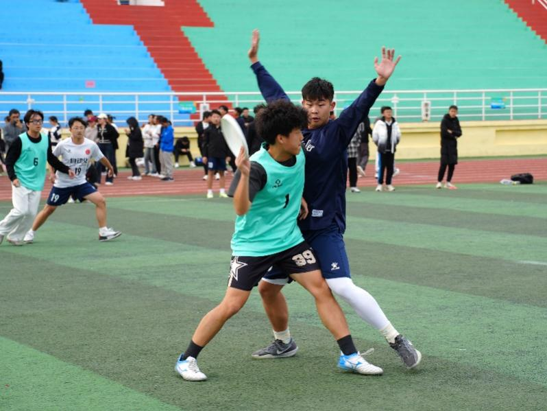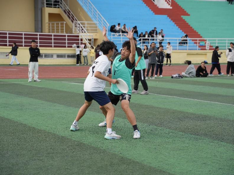 赛场上,选手们精神抖擞、斗志昂扬。队员们相互配合、默契十足,为了共同的目标奋力拼搏。他们在场上不断调整战术,展现出了高度的团队凝聚力和执行力。无论是精准的传盘还是精彩的接盘,都彰显出选手们扎实的基本功和出色的竞技水平。飞盘在空中快速划过,宛如一道绚丽的弧线,吸引着观众们的目光,他们呐喊助威、加油鼓劲。场上场下齐心协力,经管学院最终斩获亚军。