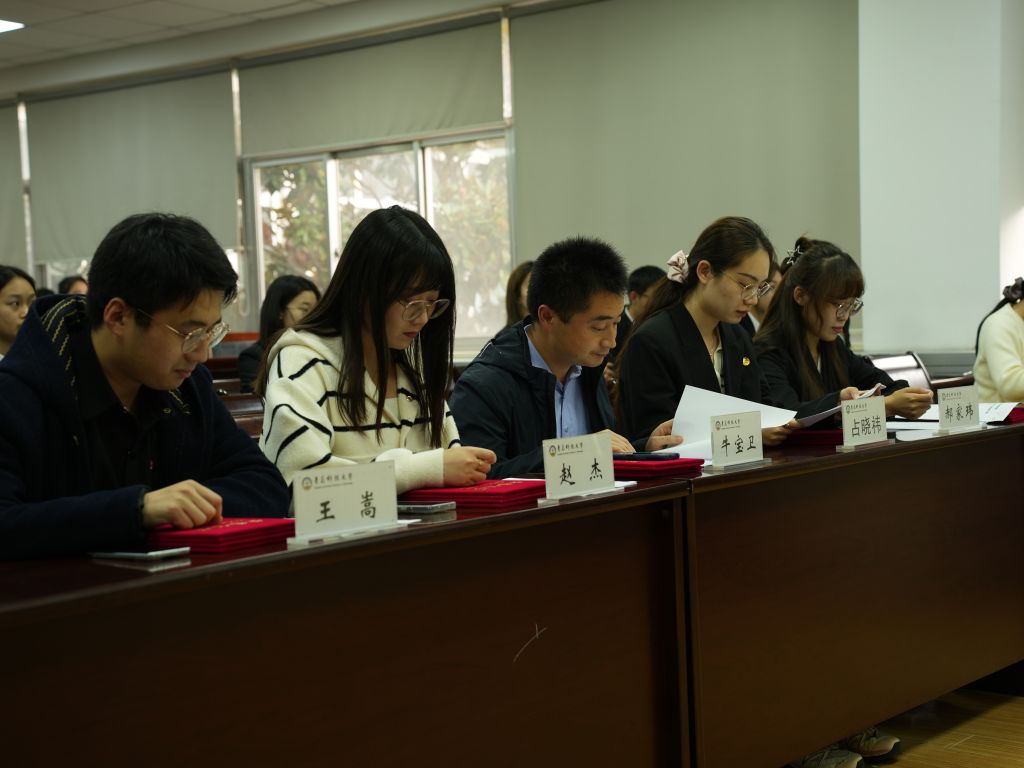 为深入贯彻落实习近平新时代中国特色社会主义思想和党的二十届三中全会精神,进一步深化学习“青年马克思主义者培养工程”关于青年工作的重要论述,激励广大团员青年坚定马克思主义信仰,争做新时代青年马克思主义者,不断培养学生骨干、共青团干部的爱党爱国情怀,塑造一批素质高、能力强、肯干事的团学骨干队伍。经管学院积极响应团委号召,于11月12日下午在经管楼419会议室举行“青春为中国式现代化挺膺担当”2024—2025年青马工程培训班开班仪式暨青马第一课。学院党委副书记兼副院长牛宝卫、各年级辅导员老师、青马培训班学员和部分学生代表参加开班仪式。开班仪式由团委书记付继航主持。
