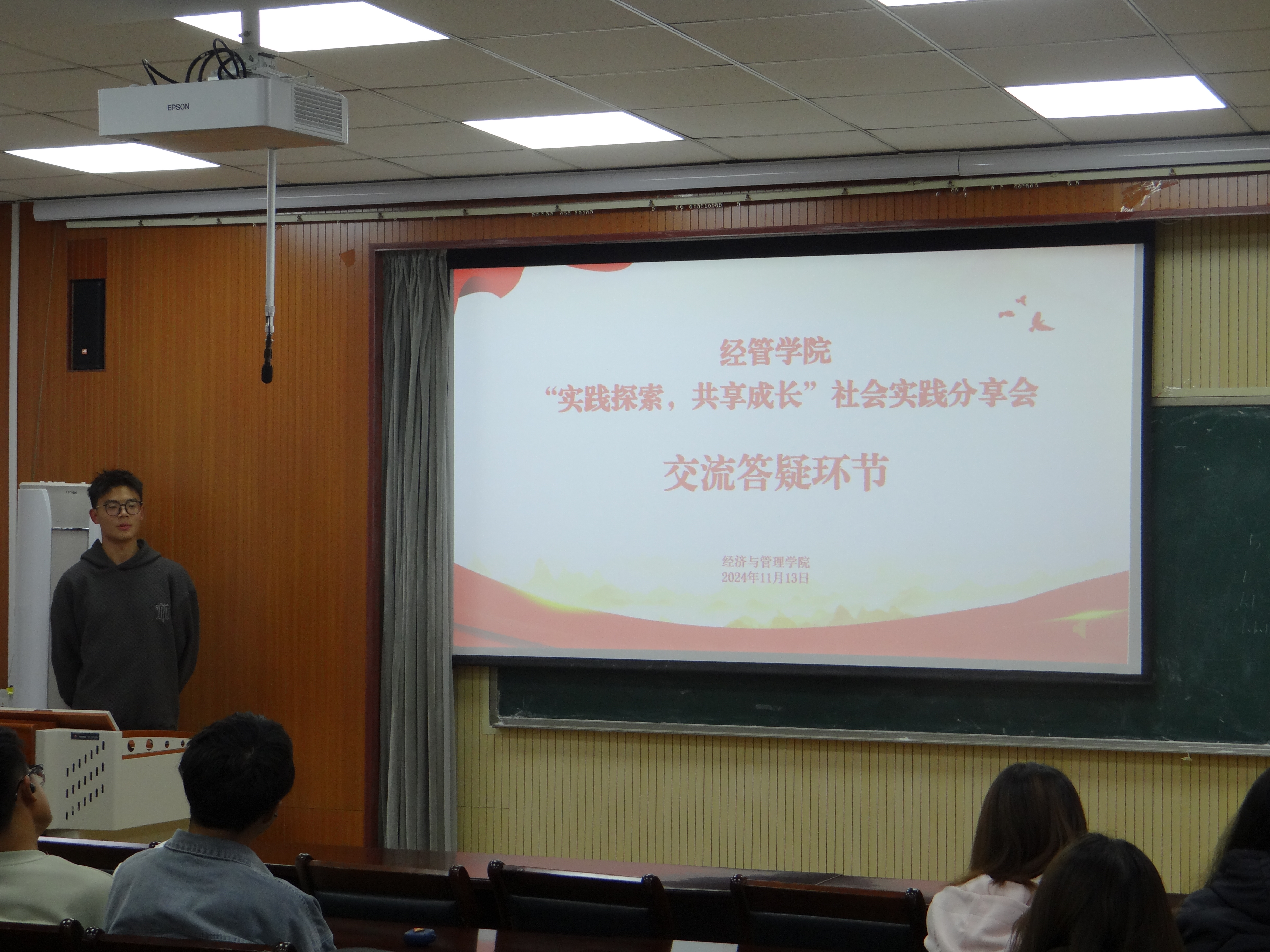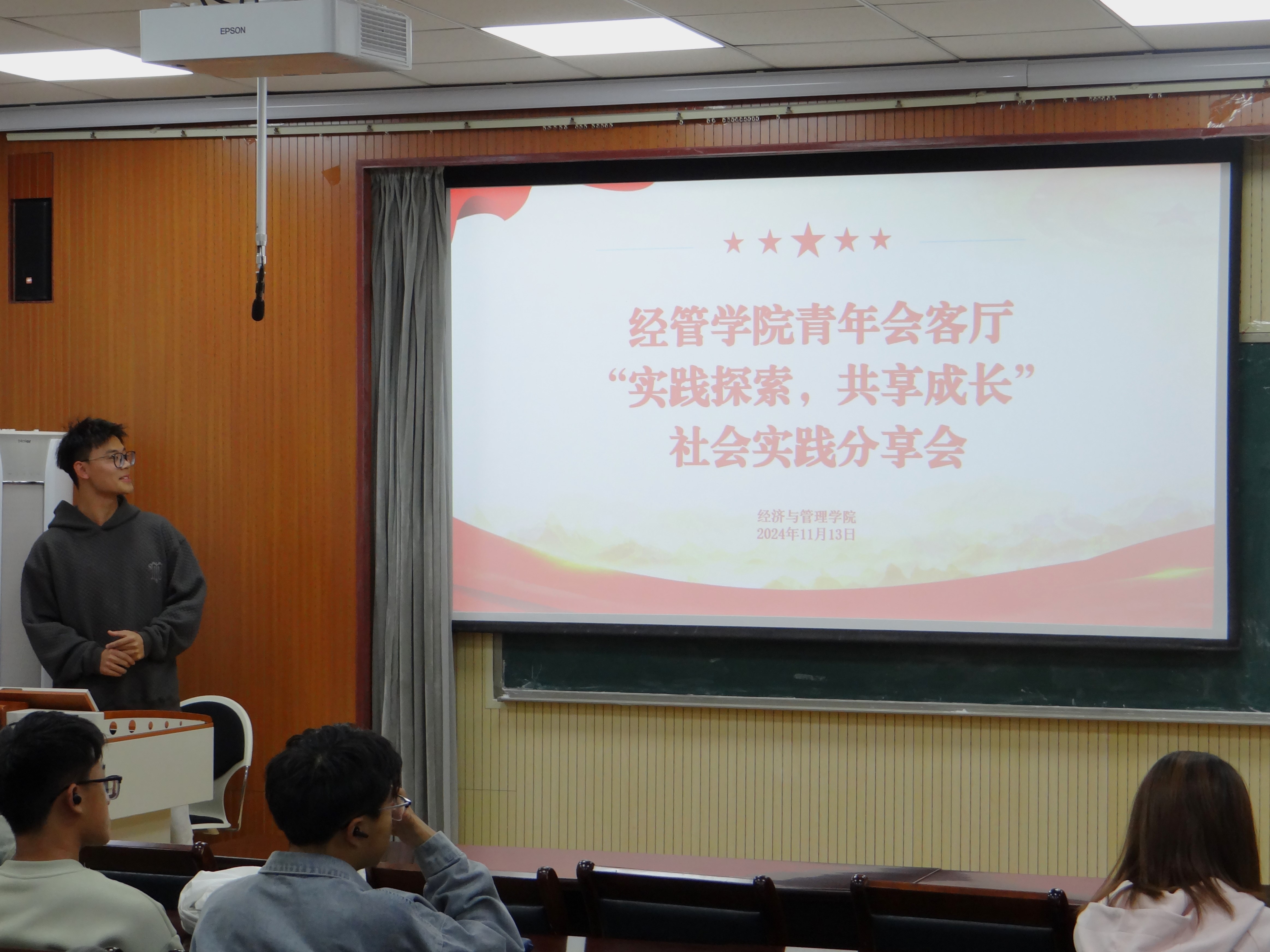 为进一步发挥青年会客厅的引领带动作用,汇聚全过程民主的重要活力,经管学院团委紧扣服务青年的工作生命线,于近日开展青年会客厅系列活动之“实践探索,共享成长”社会实践分享会,本次分享会邀请了2023级的优秀学子进行经验分享,学院2024级本科生参加会议。