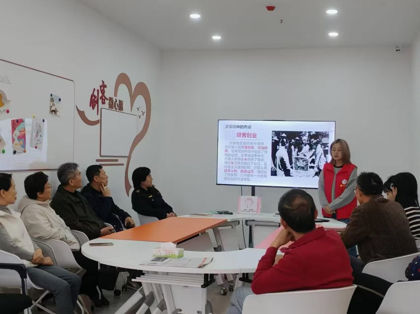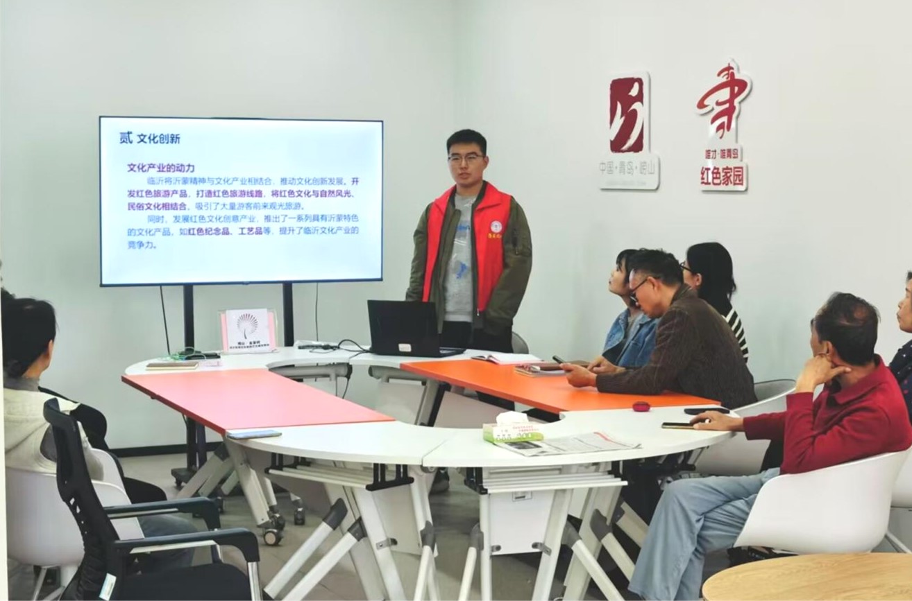 宣讲团围绕历史回响、新时代担当、沂蒙精神的传承与创新及未来展望四大主题,深入探讨了沂蒙精神的丰富内涵及当代价值。在活动中,宣讲团成员与社区党员共同回溯了沂蒙大地在革命岁月中的光辉历程,通过讲述一个个感人至深的红色故事,再现沂蒙精神“党群同心、军民情深、水乳交融、生死与共”的崇高风范,揭示了其在新时代的璀璨光芒。成员们通过讲述革命战争时期沂蒙山区人民与八路军并肩作战的英勇事迹,革命先辈在极其艰苦的条件下坚定信念、不懈奋斗的革命精神,表达出对革命先烈的崇敬和缅怀之情。宣讲团紧跟时代步伐,深入阐述了沂蒙精神在新时代的崭新价值,指出其与当代创新精神相辅相成,激励着广大青年在新时代的征程中奋勇前行、开拓创新。此次红色故事交流,不仅触动了在场听众的心弦,更让沂蒙精神在每个人的心田生根发芽,绽放出新的光彩。居民们纷纷表示,通过聆听红色故事,他们对革命历史有了更加深入的了解,对革命先烈的崇敬之情也油然而生。社区负责人鼓励青年学生能够多进社区,通过青年带动,让更多的年轻人和孩子们能够接触到红色文化,传承红色基因。