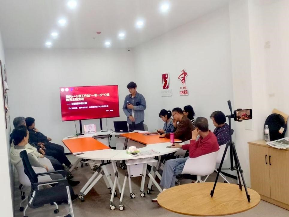 为提升社区内老年人的健康生活意识和儿童的心理健康水平,促进家庭和谐与社区发展。11月12日,信息学院“阳光e+”心理工作站与科大悦苑社区在社区党群服务中心举办“一老一少”心理教育主题宣讲活动。社区网格员姜淑香、社区党员及入党积极分子参加,活动由“阳光e+”心理工作站学生站长曹博阳担任宣讲人。