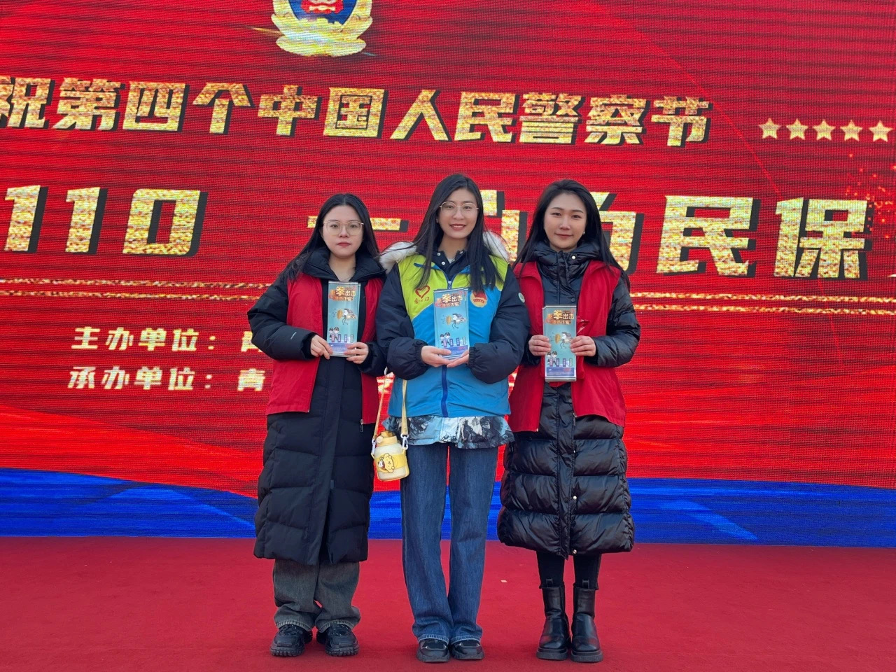 110日上午,青岛市公安局在五四广场举办庆祝第四个“中国人民警察节”暨第38个“110宣传日”集中宣传活动,法学院团委三名反诈青年志愿者参加本次活动。