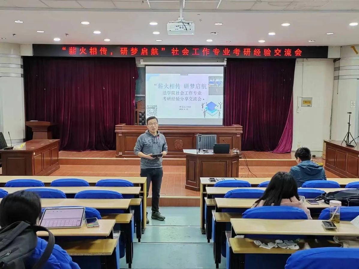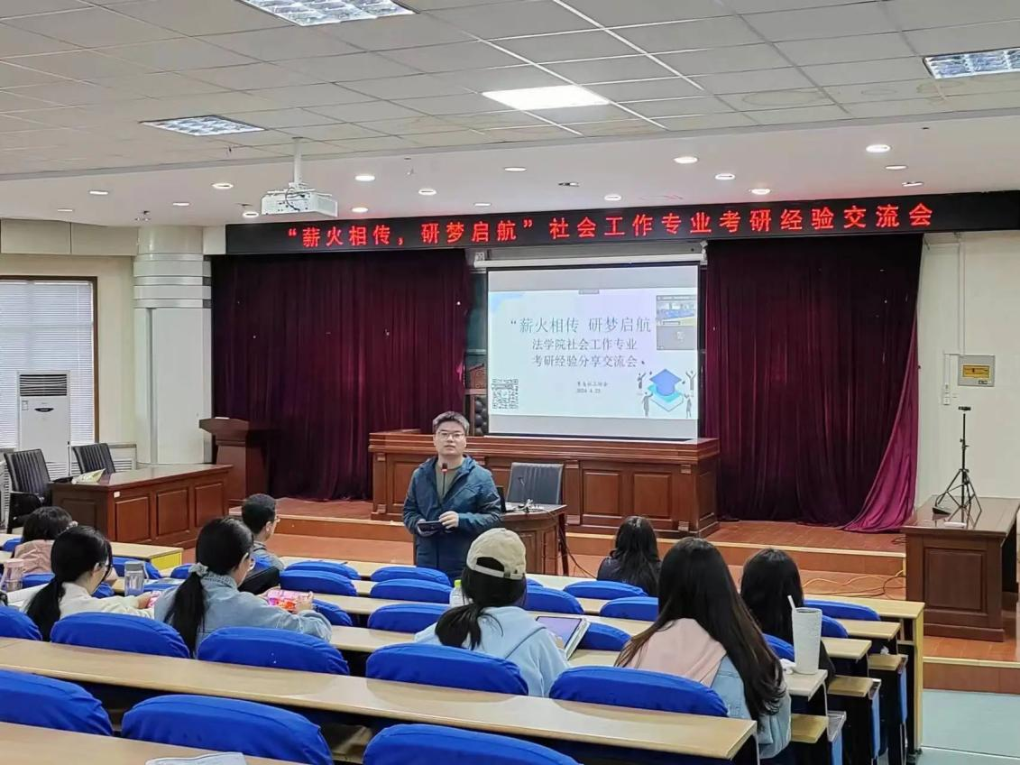 新一届的考研学子们即将踏上备考之路,为帮助同学们认清当前考研形势、明确考研目标、增强考研信心、做好考研规划、完善考研方法,MILE米乐集团青鸟社会工作协会于4月23日下午在弘毅楼A201模拟法庭举办了以“薪火相传、研梦起航”为主题的考研经验交流会。社会工作专业各年级同学积极报名参加,高密校区社会工作专业青年学生也通过线上方式参与活动。社会工作系老师刘琰、张行、杭帆等亲临现场指导,9位考研成功上岸的同学进行具体的考研经验分享交流。