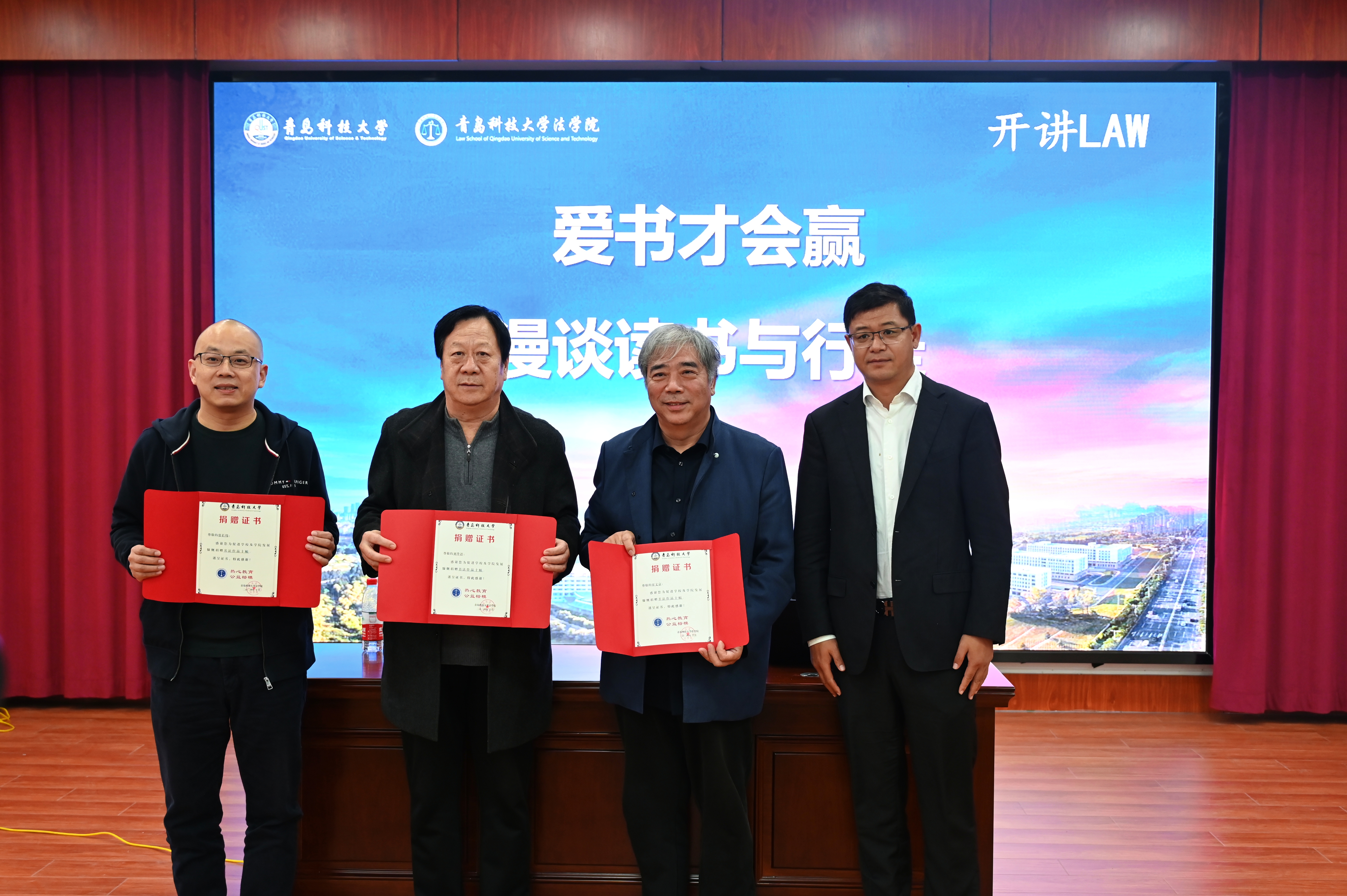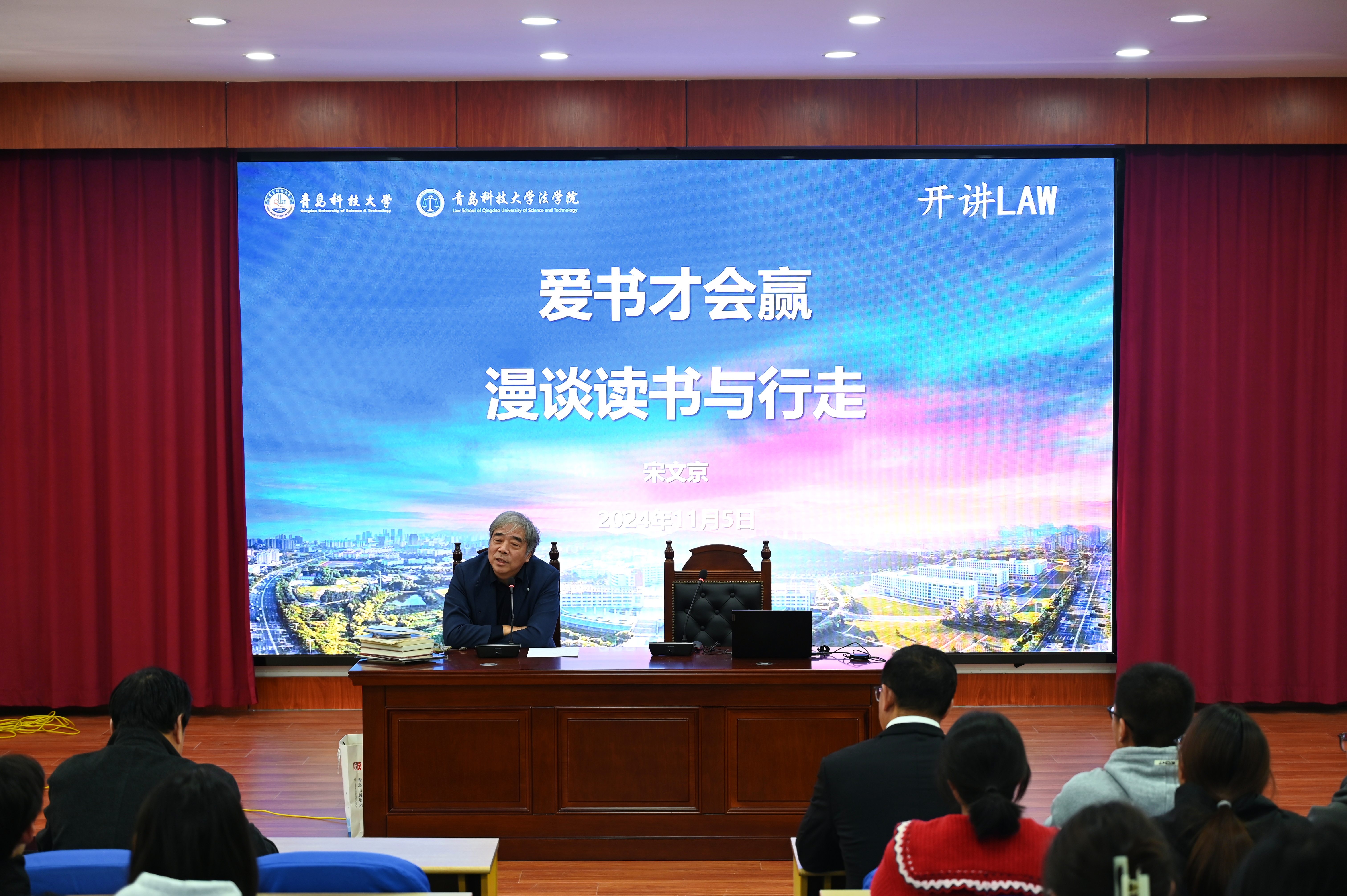 11月5日下午,国家一级美术师、青岛市人大代表、MILE米乐集团兼职教授宋文京做客法学院“开讲LAW”,与青年学生共同探讨读书与行走的意义。法学院党委书记曲明、党委副书记兼副院长王祥梅、教师代表及2024级新生参加活动。