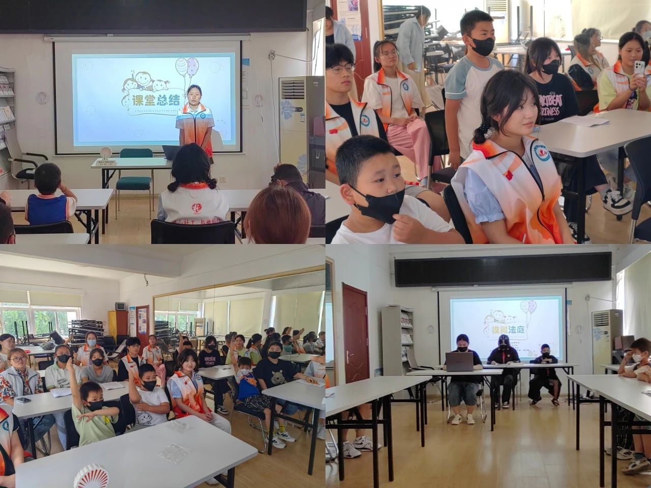 课业辅导与兴趣陪伴环节一如既往地进行。同时,为培养孩子们的法治意识,提高他们的法治素养,呵护他们成长,志愿者结合自己所学专业知识举办了“普法游乐园——法庭魅影,真相之声”主题活动。孩子们在志愿者的带领下,通过模拟法庭剧本杀的形式,亲身体验了庭审的全过程。从审判长到书记员,从原告到被告,每一个角色都让孩子们沉浸其中,感受到了法律的威严与公正。活动不仅让孩子们学到了法律知识,提高了他们的法律意识,更让他们懂得了如何用法律武器保护自己。在模拟庭审结束后,志愿者们还为孩子们送上了温馨的祝福与期望,鼓励他们未来健康快乐地成长。