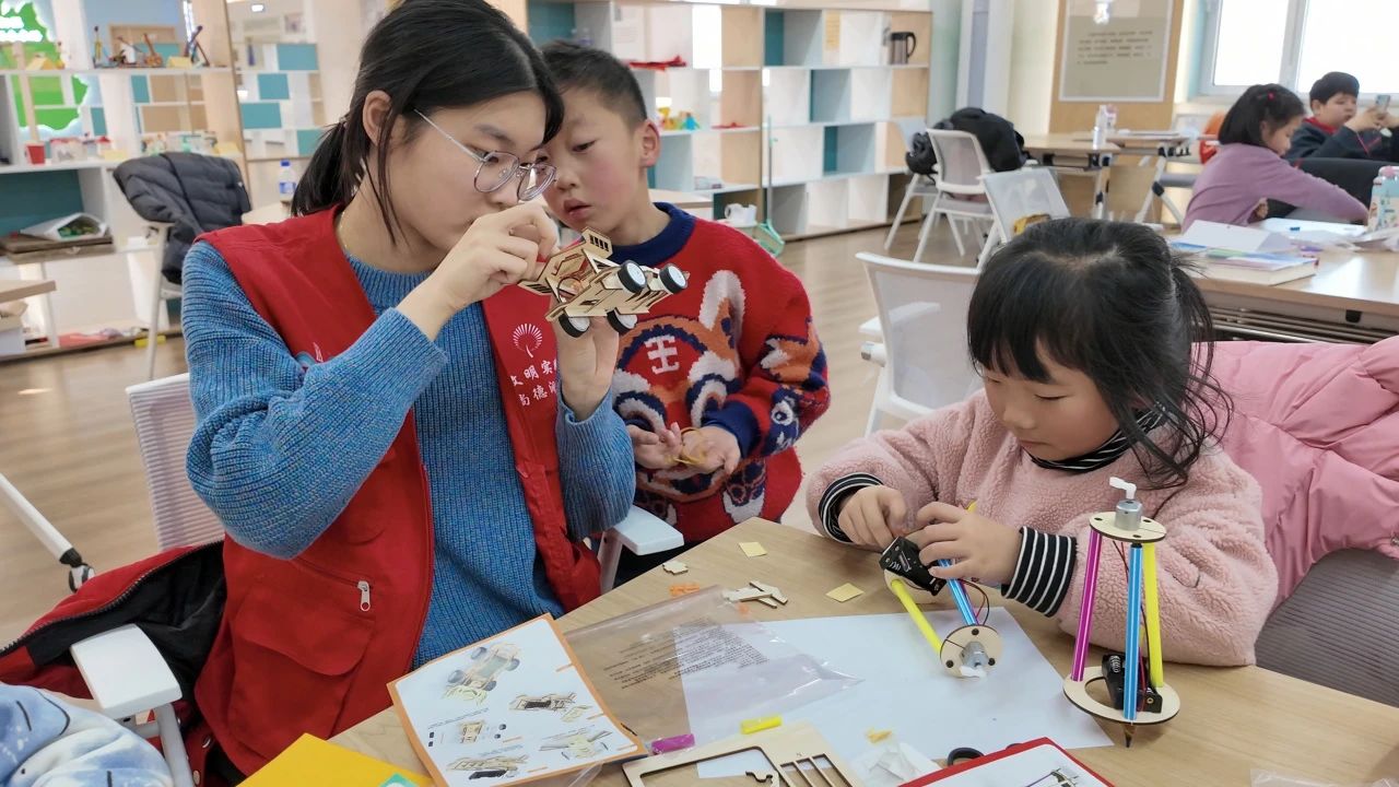 为深入学习贯彻习近平新时代中国特色社会主义思想,坚持科技力量赋能乡村发展理念,助力青年学生在实践中强化个人能力、增强社会责任感,自动化与电子工程学院AI新村实践队利用寒假课余时间,依托“趁青春·进社区”青年学生社区实践计划,前往山东省青岛市崂山区北宅街道三树新村党群服务中心,开展了一系列具有自动化学院团委特色的科技课程,将科技知识引入乡村课堂,为乡村儿童们推开了一道了解前沿科技的门。