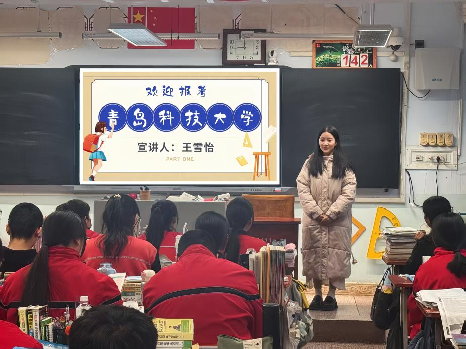 此次活动吸引了山东省莱州一中、潍坊中学、乐陵一中、内蒙古巴彦淖尔市临河区第一中学等六所中学的200余名高三学生集中参会学习。实践团队成员通过形式多样,内容丰富的宣讲活动向学弟学妹们展示着各自高校的校园风貌、学科特色、师资力量以及丰富多彩的校园生活,并结合自身的专业学习,深入浅出地讲解专业课程设置、未来就业方向和发展前景,以此来帮助同学们更好地规划和选择未来的发展道路。团队成员孙溶璐介绍道:“宣讲时回到母校,既是对青春成长的回望,也是对学弟学妹的帮助。”