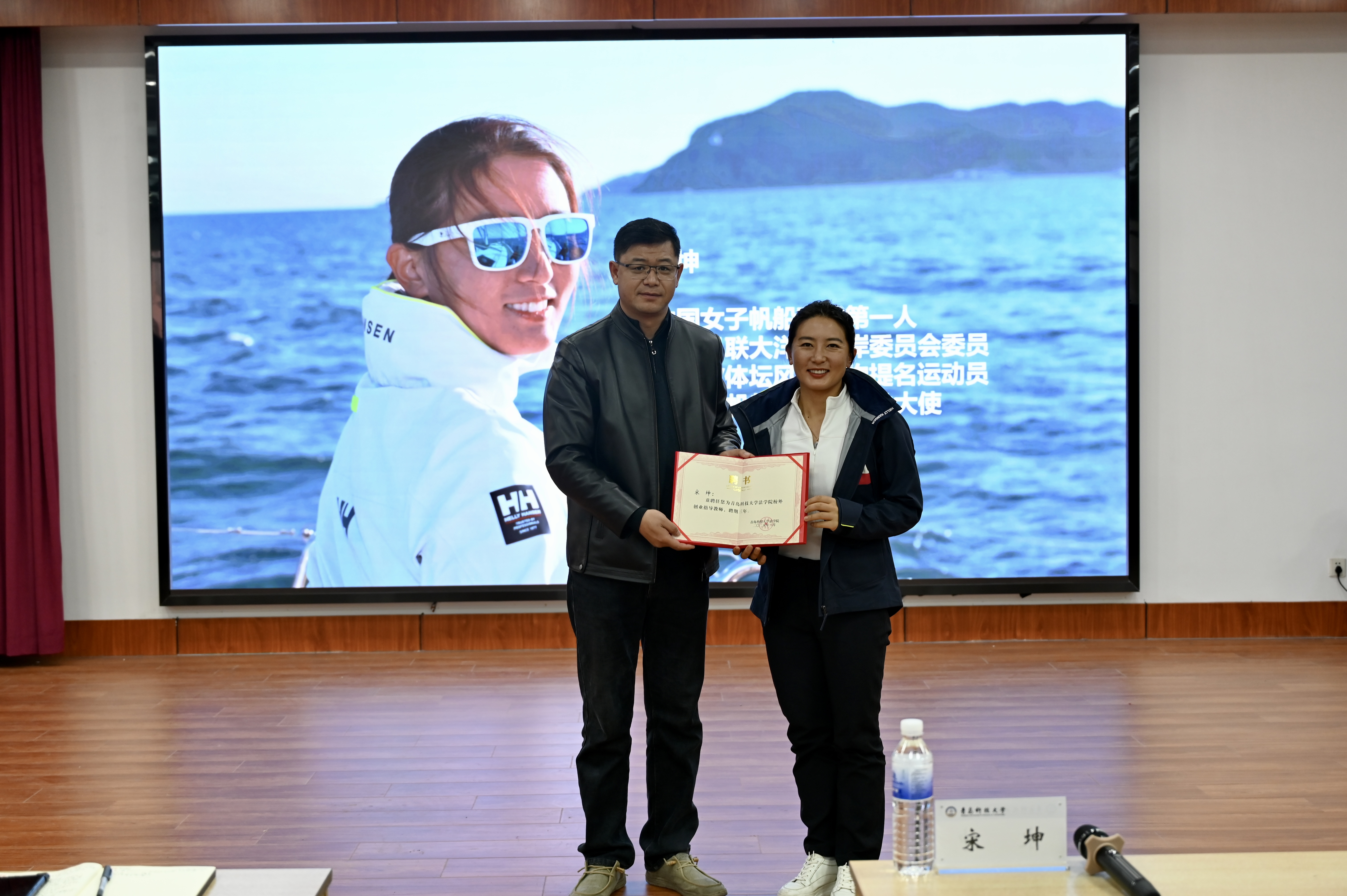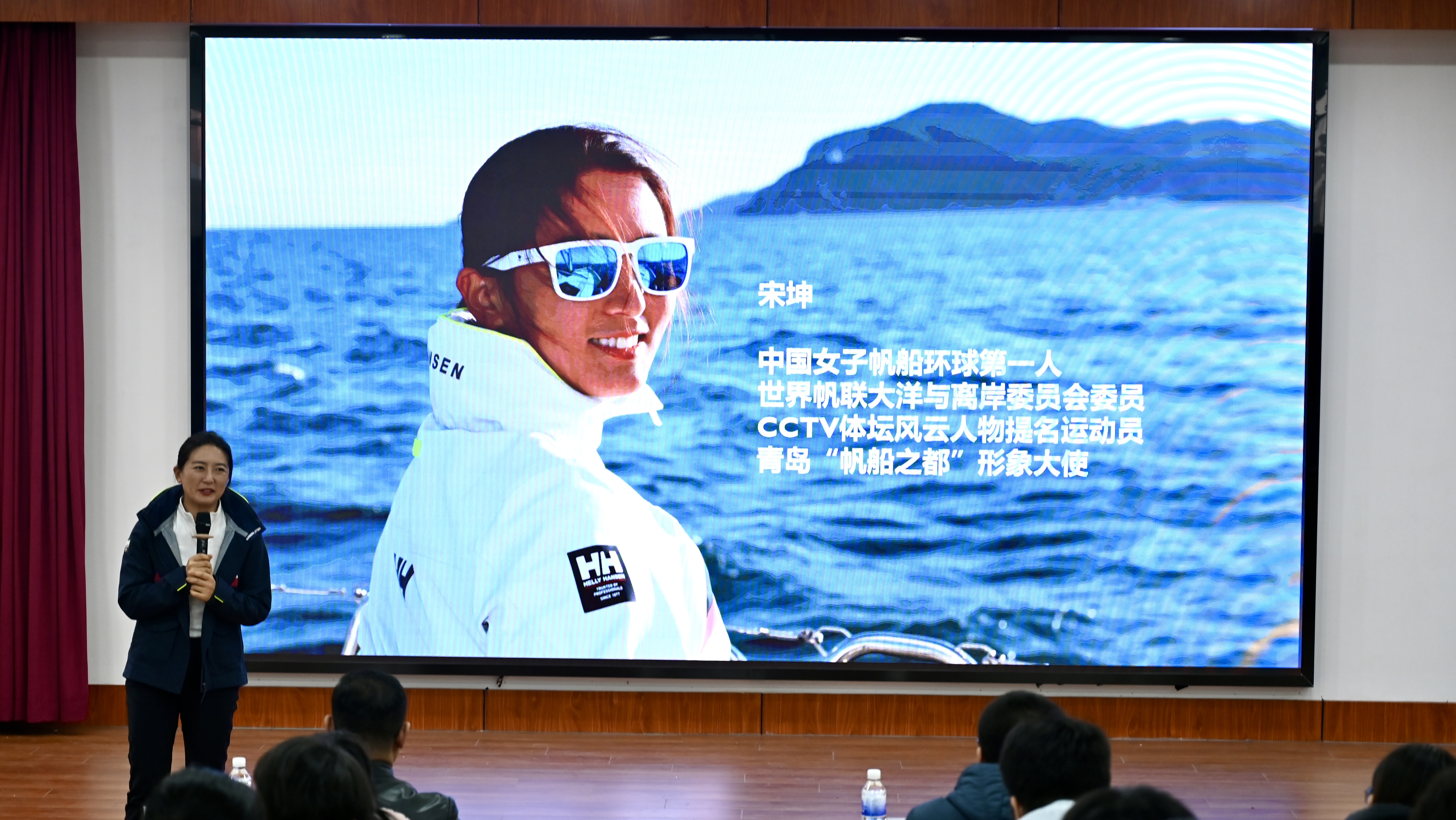 宋坤曾随“青岛号”大帆船参加13/14克利伯环球帆船赛全程比赛,历经近11个月共315天,航行4万多海里绕地球一周,成为首位完成环球航海的中国女性。她分享了在环球航行时的点点滴滴,从如何决定参加环球帆船赛,到在海上经历的风险和挑战,再到抵达终点时的喜悦和感悟,给学子们带来了一场生动有趣、内涵丰富的体育思政课。她激励大家要勇于面对学习、生活中的挑战,要有坚持不懈的精神,不断追求卓越。