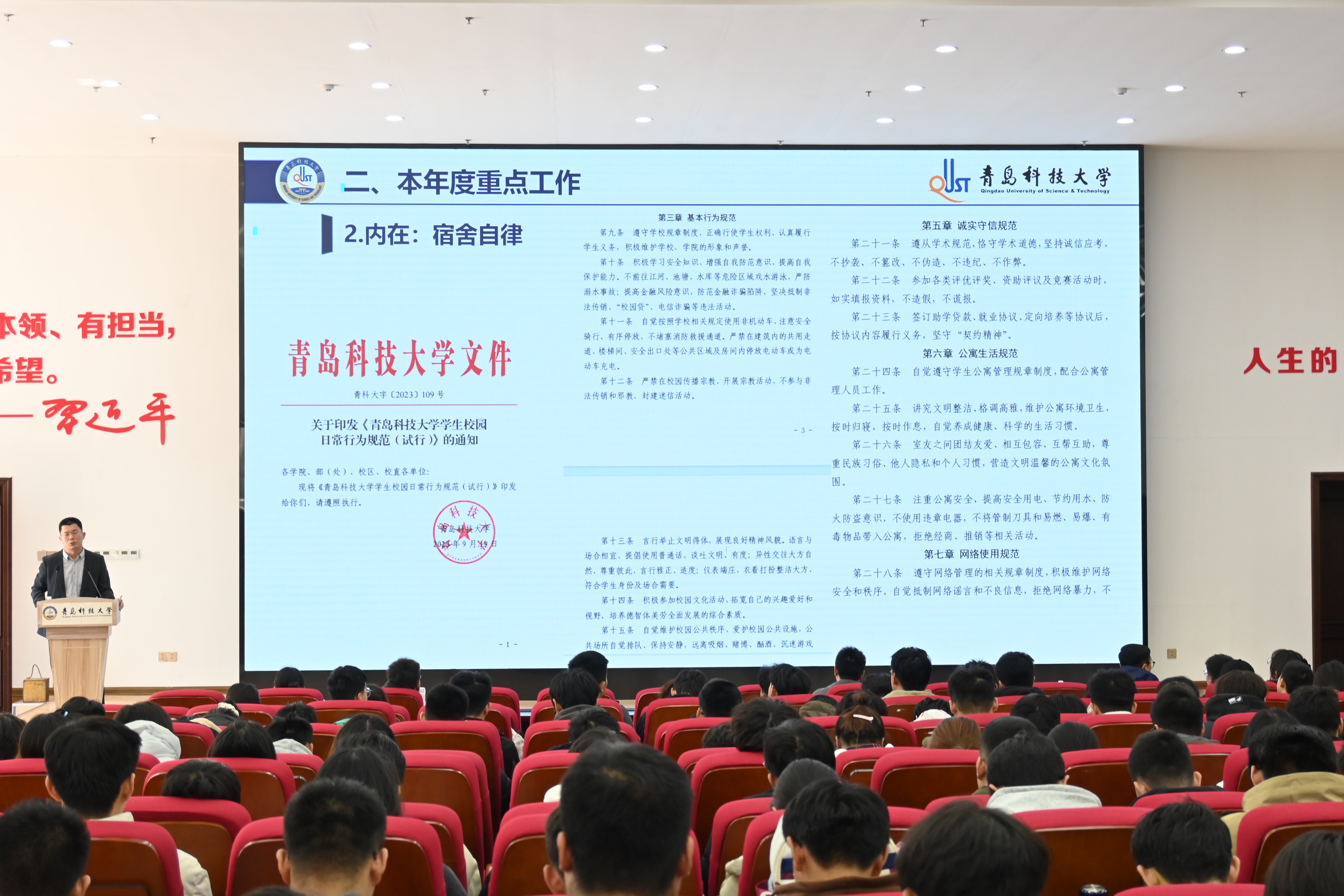 3月18日下午,自动化与电子工程学院2025年青马工程培训班启动仪式在北区团学报告厅举行。学院党委副书记兼副院长刘名森,团委书记雷静,全体团委老师、班委(团支部)、学生会骨干等400余人参加活动,仪式由赵赪赪主持。