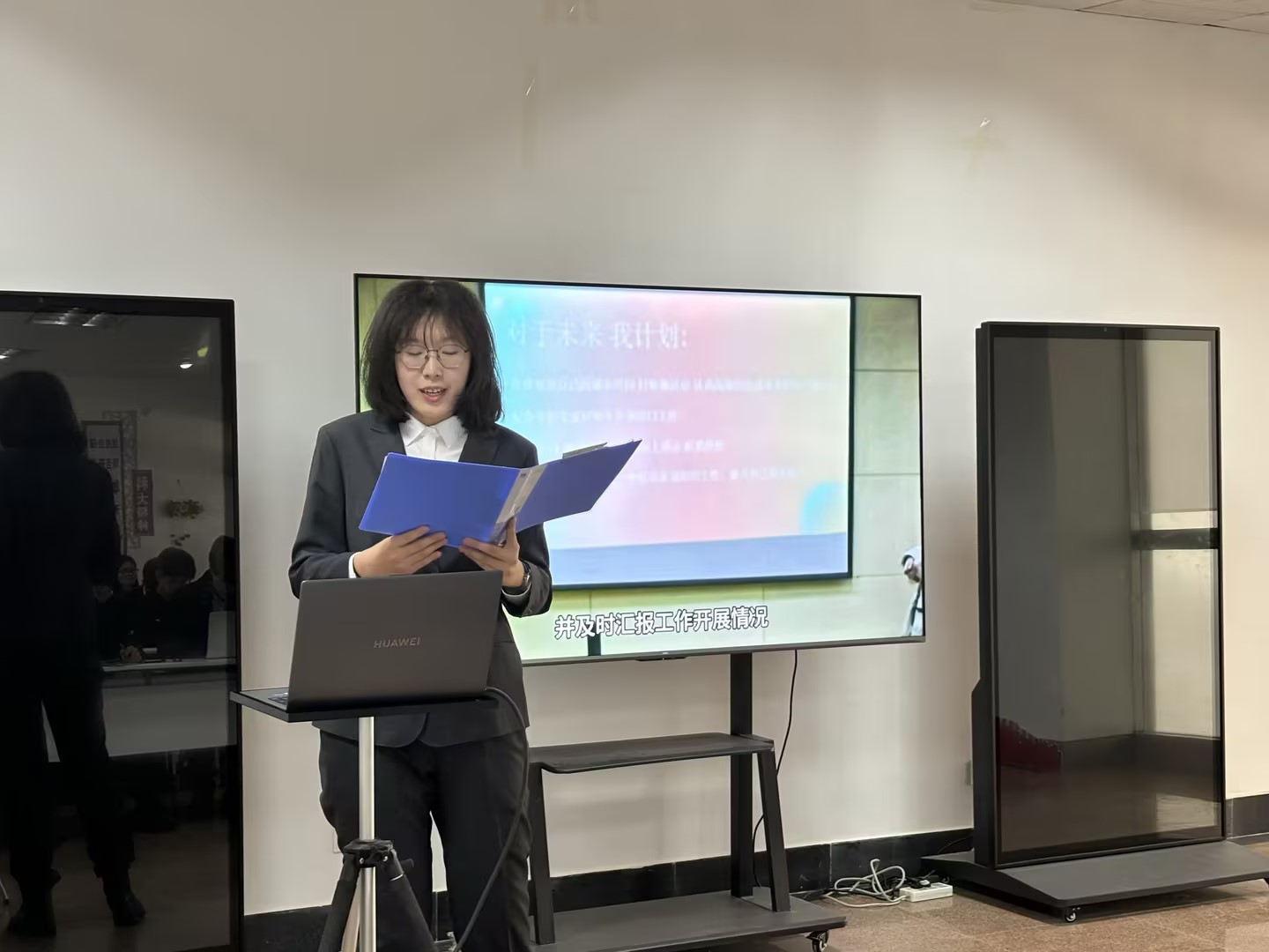 述职汇报环节,全体学生骨干围绕“履职成效、创新方法、发展目标”三大维度展开陈述。各部门负责人结合岗位职责,以详实数据与典型案例展现工作实效,重点汇报了在思想引领、学风建设、实践育人等方面的实践探索。汇报过程中,学生骨干深入剖析协同机制待优化、品牌项目延续性不足等问题,并提出具体改进方案,充分体现“刀刃向内”的改革意识。
