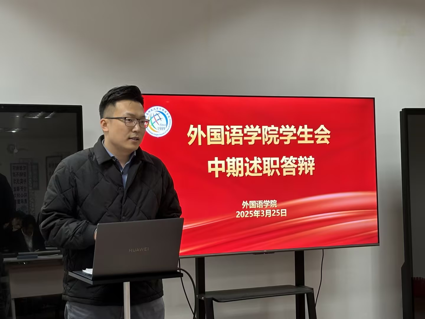 3月25日,外国语学院学生会骨干述职大会在“一站式”学生社区举行。外国语学院党委副书记兼副院长马寒、团委副书记兼学工办副主任王玉凯出席活动,学院研究生会、学生会共11个部门45名部门负责人及志愿者参加述职。会议全面总结学生组织阶段性工作成果,系统规划下一阶段发展路径,着力提升学生骨干服务能力与责任意识。