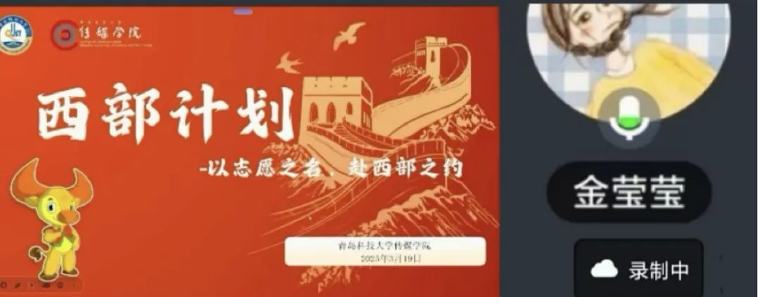 近日,传媒学院“到西部奋斗 让青春出彩”西部计划宣讲会在学院310会议室举办。本次宣讲会邀请2024年西部计划志愿者范丹平、蒋森豫分享经验,现场吸引260余名学子线上线下参会。会议由学院团委负责人金莹莹主持。