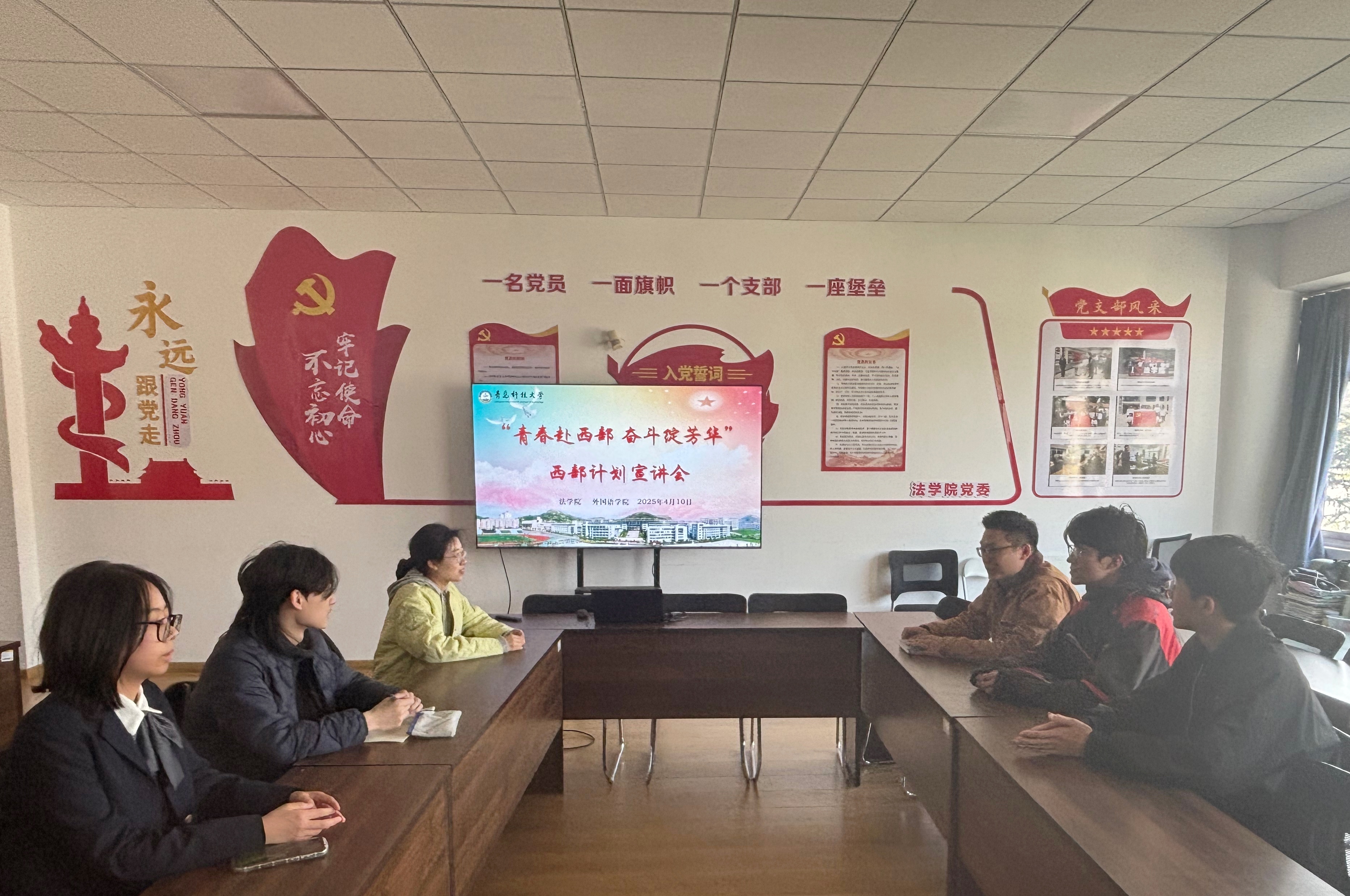 为引导青年学生深入了解西部计划,激发青年学生投身西部建设的热情,4月10日,法学院与外国语学院在弘毅楼C408联合举办“青春赴西部,奋斗绽芳华”西部计划宣讲会。