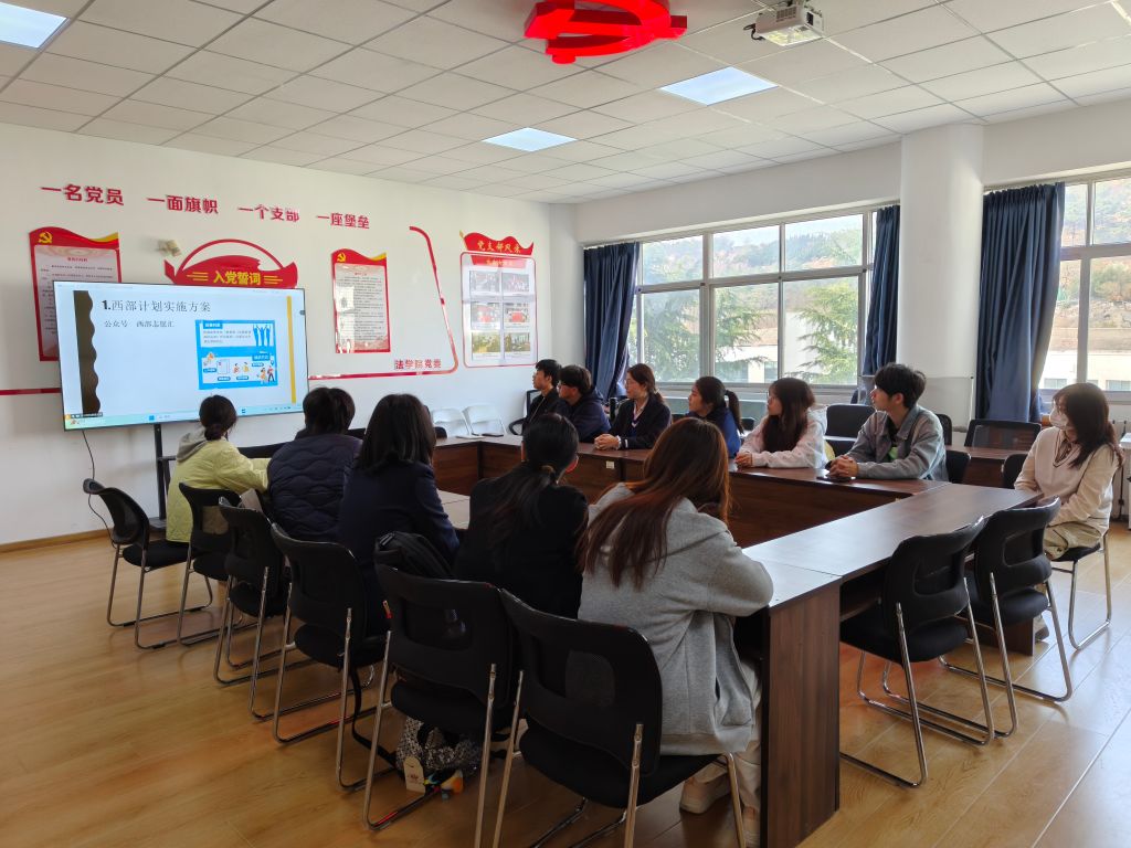 外国语学院团委副书记兼学生工作办公室副主任王玉凯、法学院辅导员王梦珂就西部计划实施基本情况、招募流程和政策保障方面进行详细解读,引导和鼓励有志青年到西部基层锻炼成长,建功西部,报效祖国。