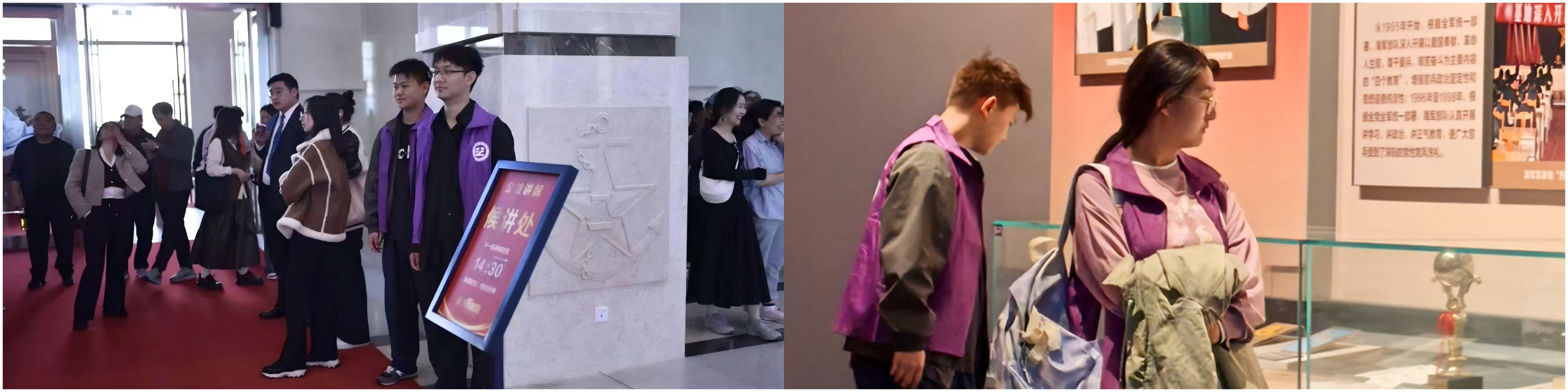 活动前,团队召开宣讲会,介绍海军发展历程、重要战役等知识,为志愿服务做好准备,筑牢服务根基。活动期间,艺术姐姐们身着统一服装引导答疑,讲述舰艇模型背后甲午海战里人民海军的艰辛历程,让游客沉浸其中,心生敬仰。
