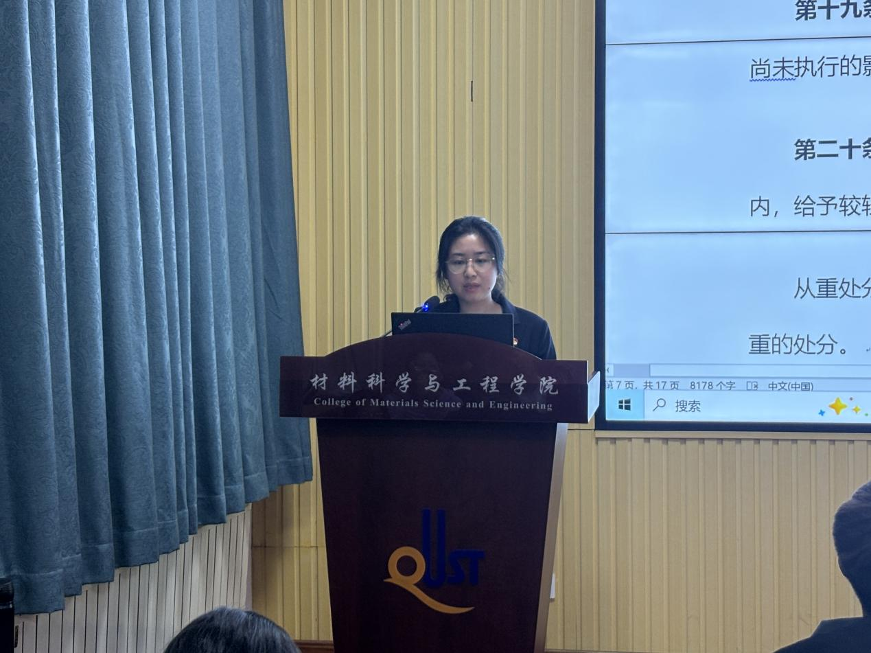 为进一步增强团员纪律意识,强化团员责任担当,4月21日,材料学院团委于材料楼101报告厅开展“严守团纪条例,争当先锋表率”主题团课,团课由材料学院团委副书记付文静讲授,全体2025年春季学期入团积极分子、各年级团支部书记参加培训。