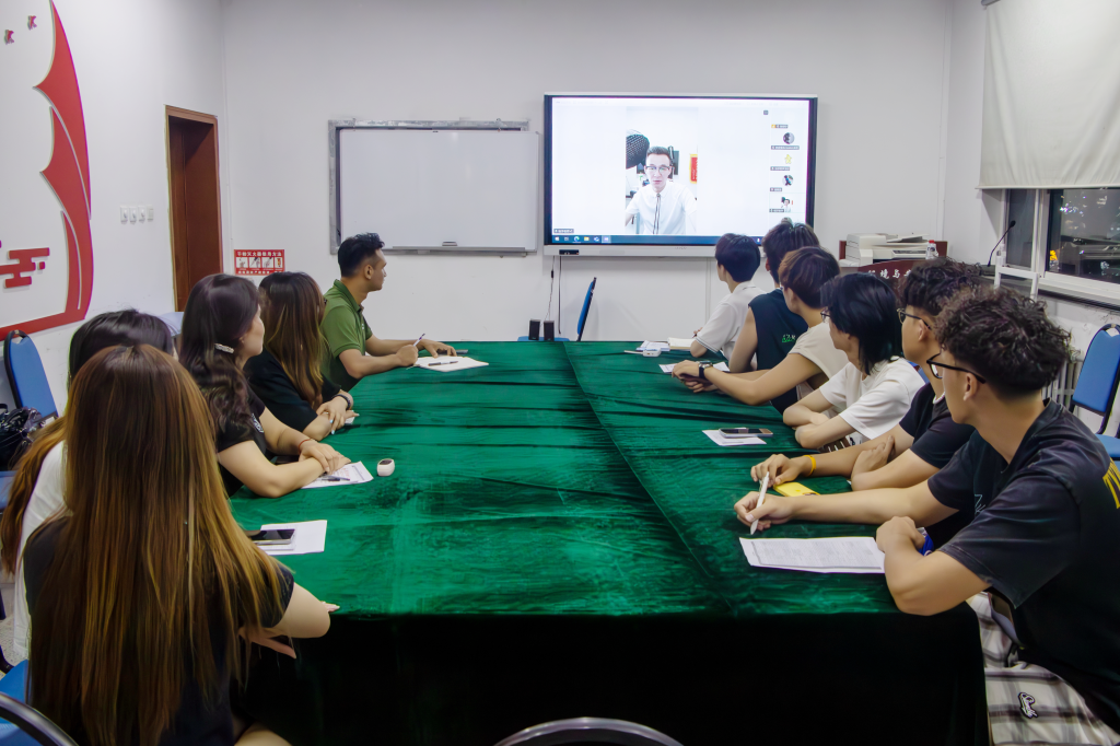 预备会结束后,国家级普通话测试员、传媒学院杨洋对实践队员进行普通话教学专题培训。他结合当地群众语言基础与习惯,介绍了新疆少数民族的发音特点及常见偏误区域。讲解了声调发音规则,通过领读、跟读、对比练习等方式,指导队员掌握正确发音方法,并针对少数民族学习者易出现的声调遗漏、错用导致语义模糊等问题,提供了具体的纠正方案和教学策略。