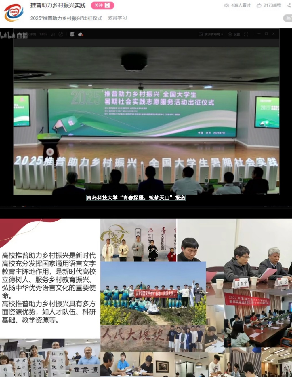 当天实践队还参加了由教育部语言文字应用管理司、共青团中央青年发展部共同举办的2025年推普助力乡村振兴暑期社会实践活动出征仪式暨活动培训。