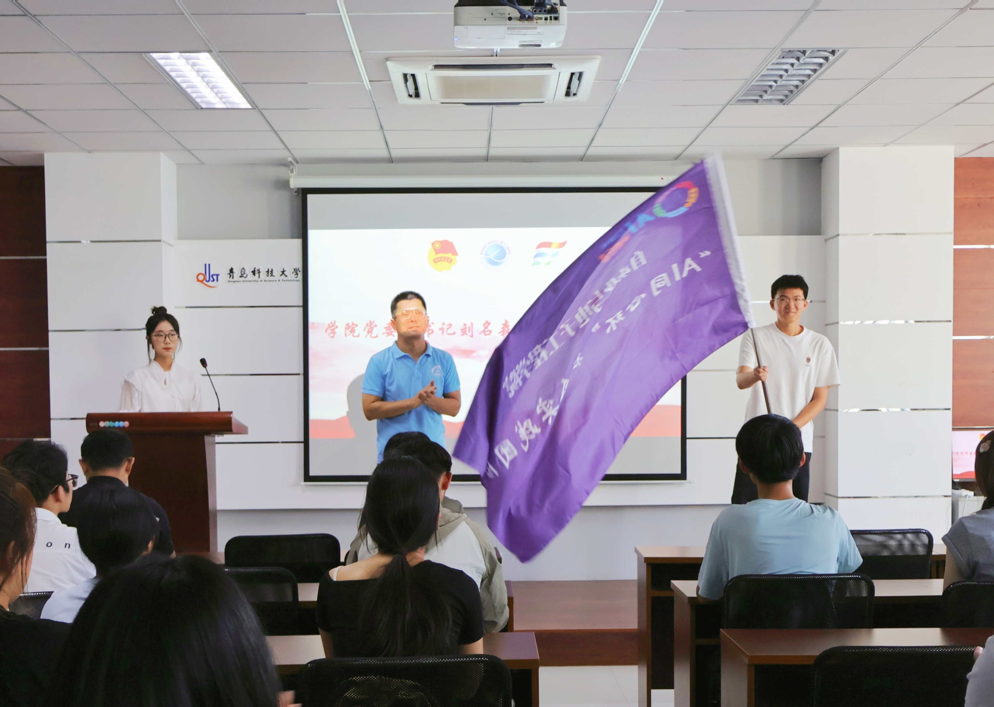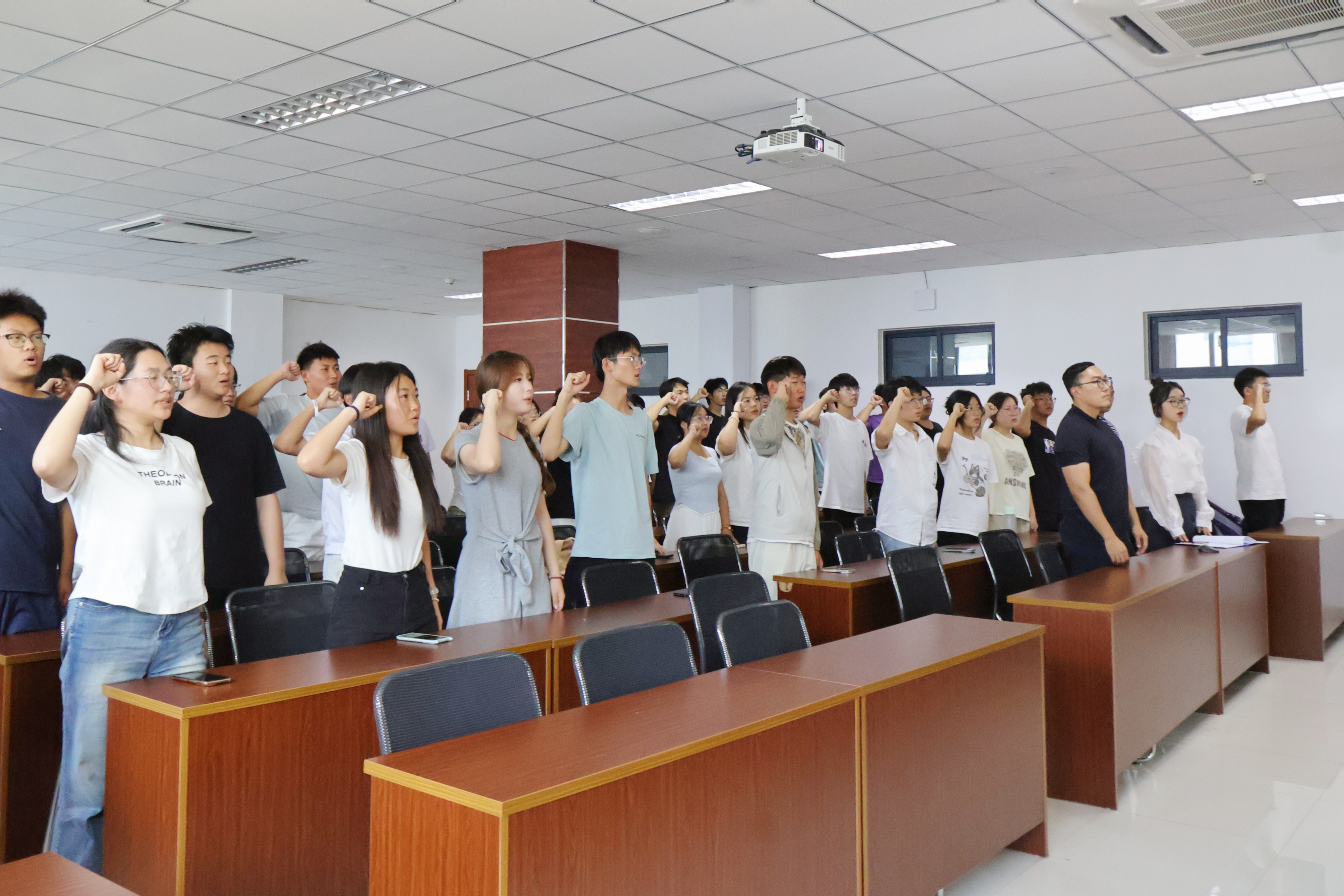 仪式上,刘名森为实践队代表测控242班卜德隆同学授旗;校级重点团队负责人中法242班付经伦同学带领全体成员庄严宣誓。随后,李卓林、丁雅琼两位老师围绕实践安全、行程规划、成果提炼等注意事项开展了专题培训。