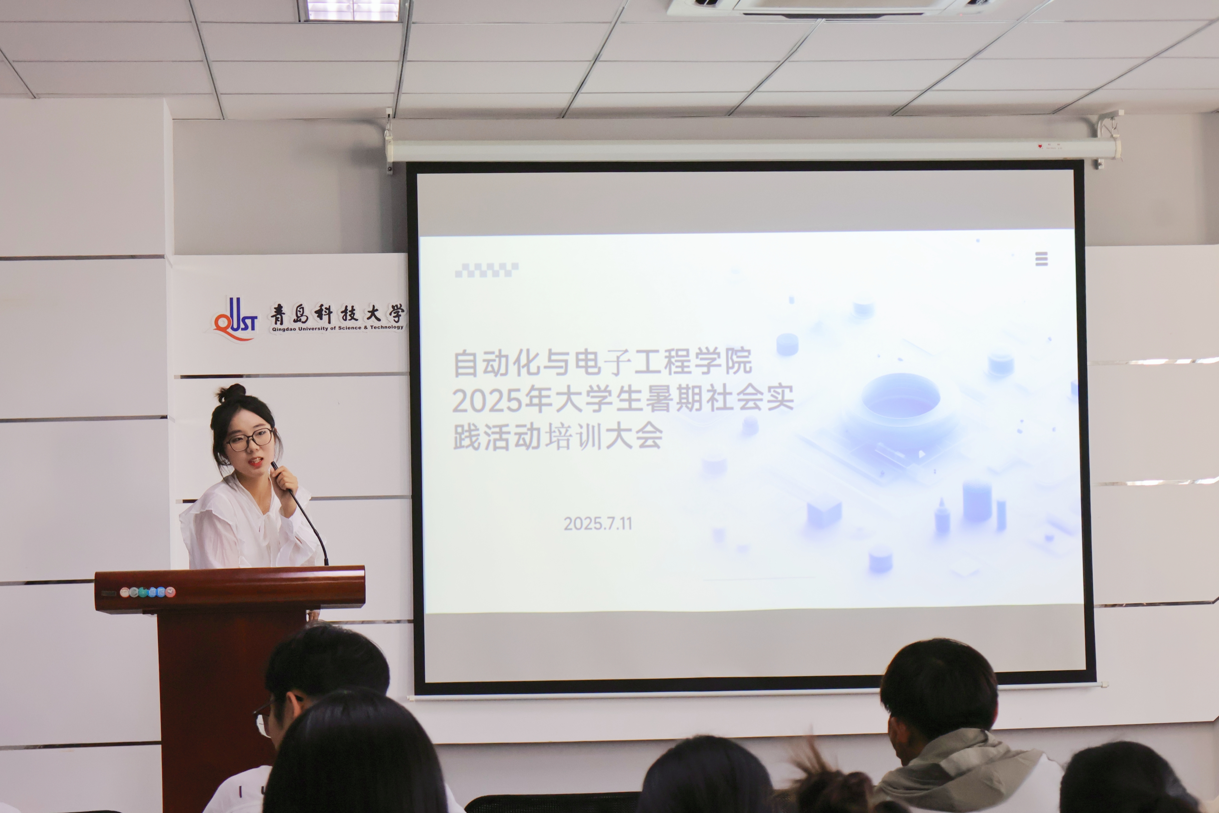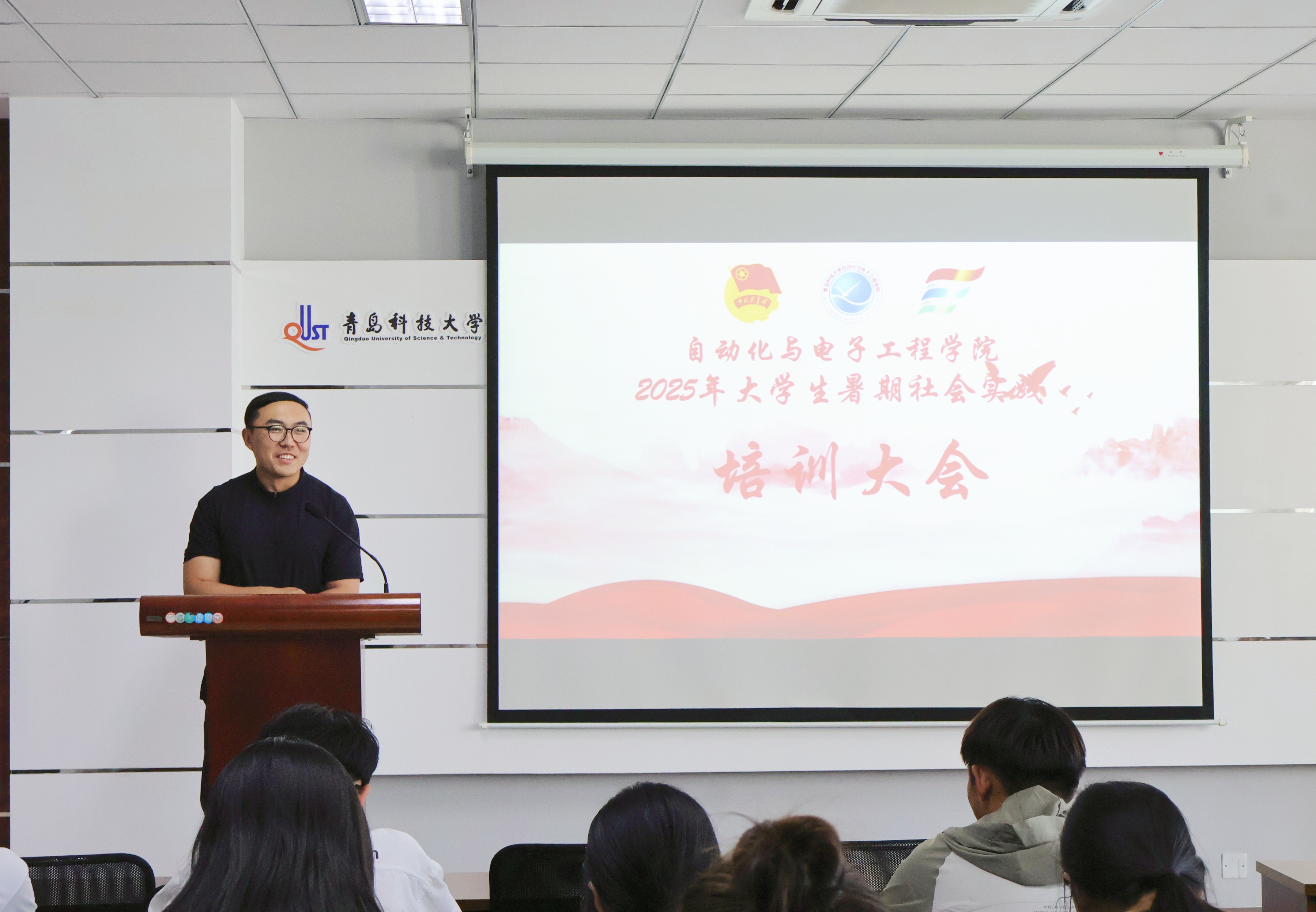 7月11日,自动化与电子工程学院2025年大学生暑期社会实践活动出征仪式暨培训大会在学院楼410会议室举行。学院党委副书记刘名森、团委书记雷静、团委老师李卓林及各实践团队师生代表等百余人参会,仪式由团委老师丁雅琼主持。