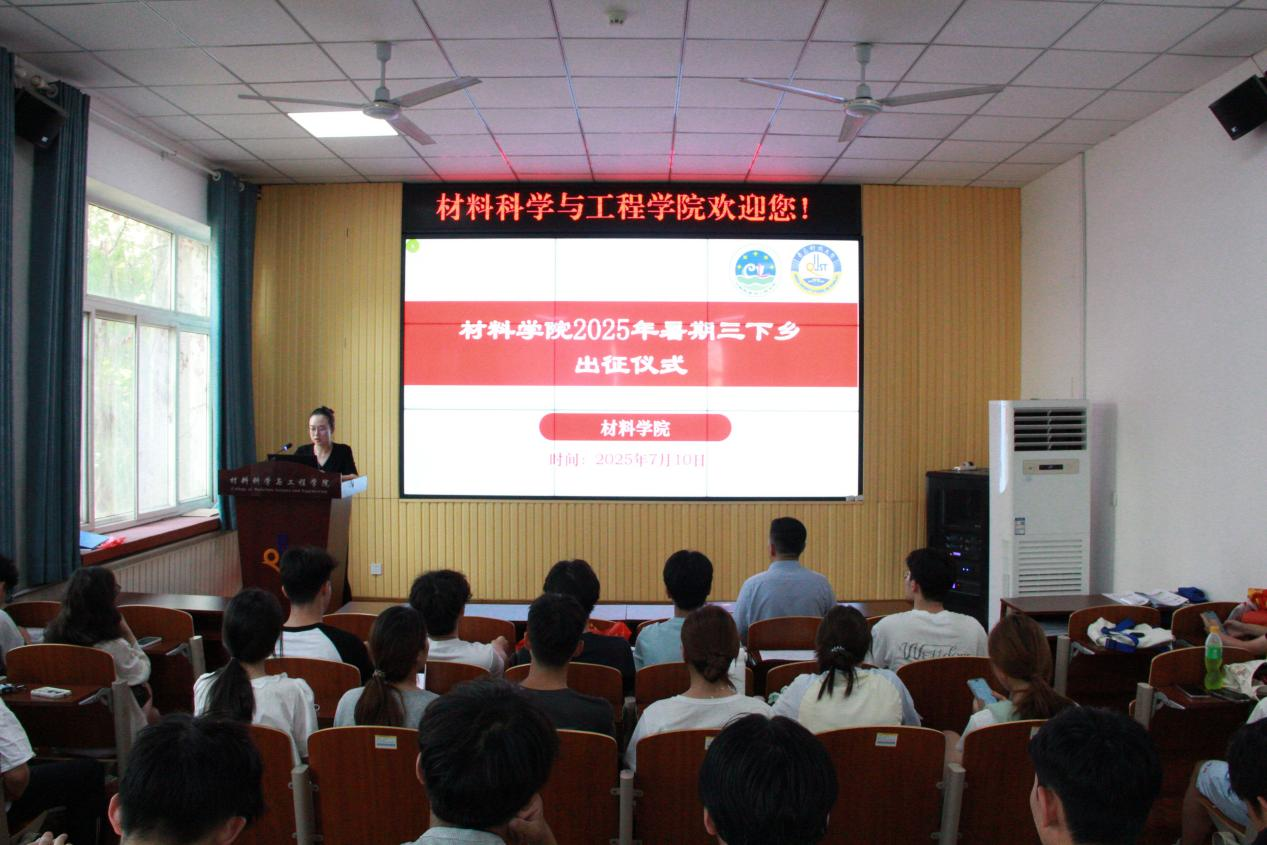 为引导青年学生走进乡村、企业、社区,将所学知识应用于实际以助力基层发展,同时锤炼学生意志品质、增强社会责任感,材料学院2025年暑期“三下乡”社会实践活动出征仪式于7月10日在学院楼101举行。学院党委副书记兼副院长葛夫国、学院24级辅导员潘超超及全体实践队员参加了此次出征仪式。