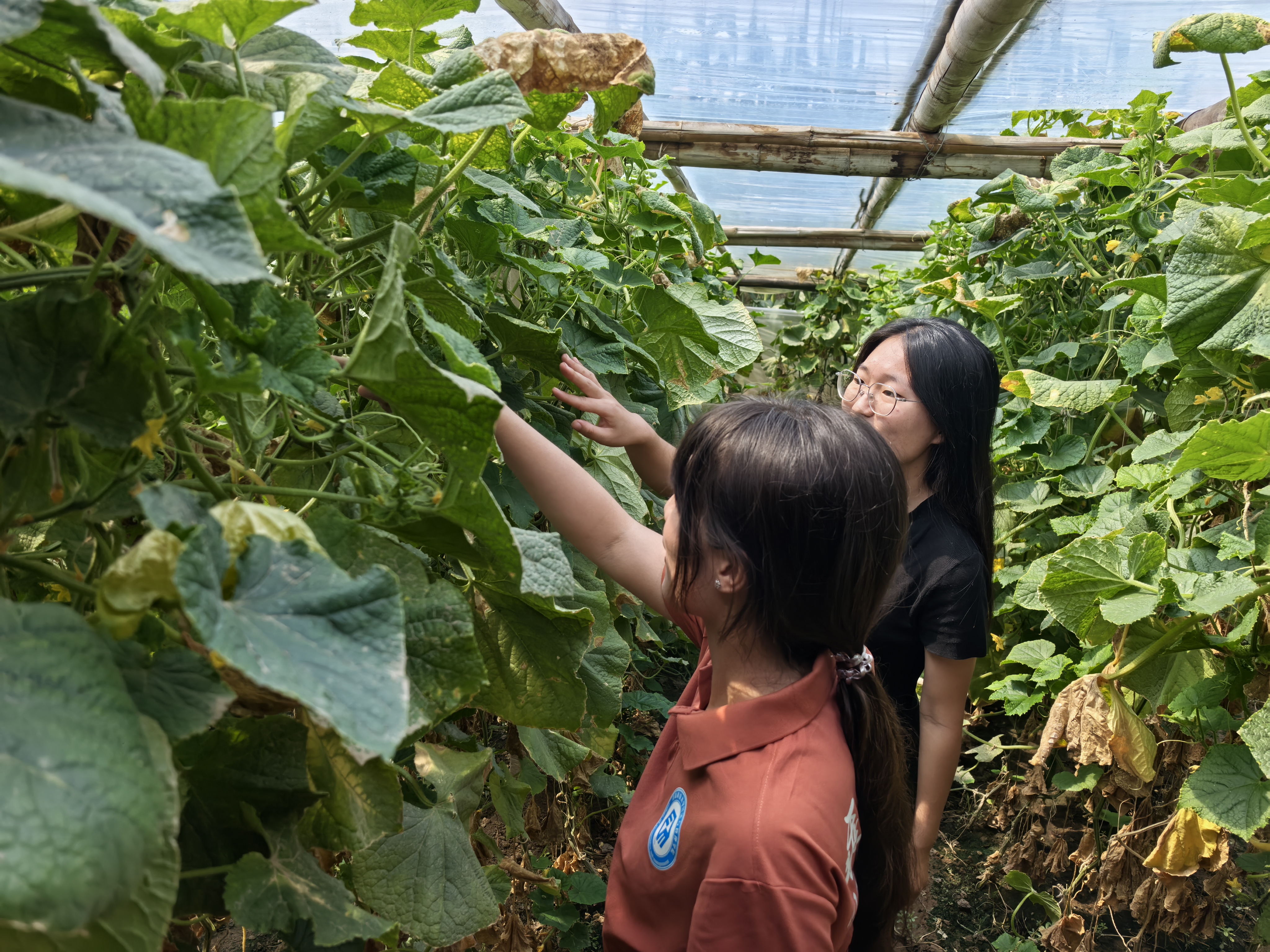 在打帘王庄村,团队聚焦当地特色黄瓜产业展开深度调研。成员们深入田间大棚,在考察作物生长态势的基础上,与种植户围绕种植技术、产销模式等核心问题深入交流,既细致记录产业发展的优势与瓶颈,也倾听农户在生产实践中的困惑与发展期盼。现场调研不仅为团队掌握乡村产业真实生态提供鲜活素材,更搭建起高校智慧与田间实践对接的桥梁,为破解小农户生产与大市场衔接难题积累实践依据。