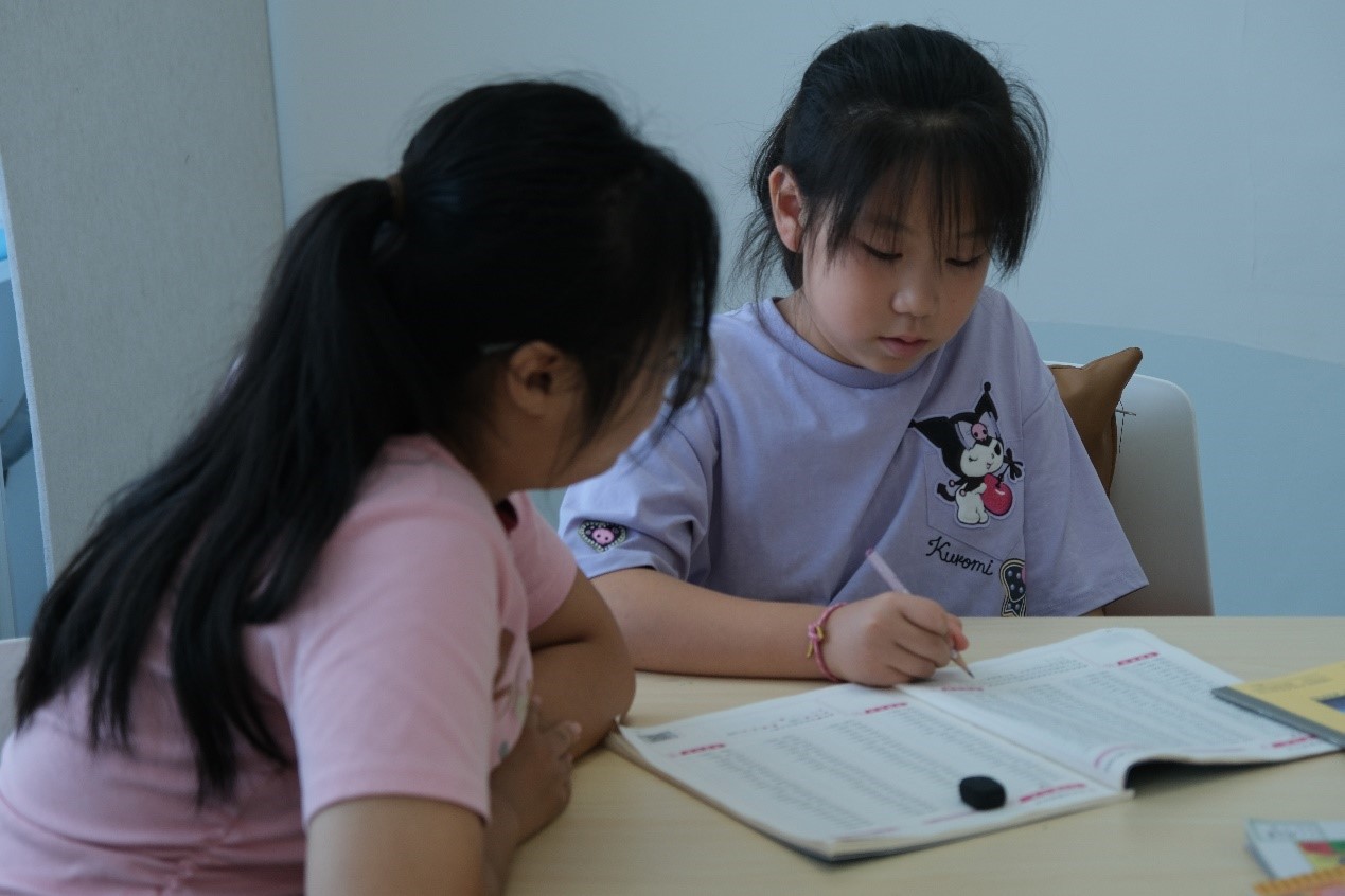 上午的时光专注于学业巩固。志愿者们化身耐心的“小老师”,为孩子们提供一对一的课业辅导。他们细心讲解习题难点,引导孩子们梳理知识脉络,培养良好的学习习惯。安静的教室里笔尖沙沙作响,求知的目光专注而明亮,为一天的学习奠定了坚实基础。