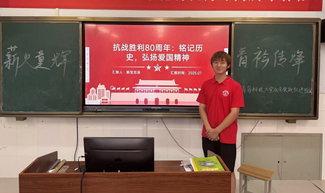 实践队员充分汲取红色养分,将所学所思凝练成一节节思政小课堂,前往山东省滨州经济开发区第一中学开展理论宣讲活动。团队成员郭宝龙泽结合所学内容,讲述历史故事,并展示珍贵的老照片,为学生们还原了那段艰苦卓绝的岁月。在 “致敬英雄” 主题分享环节,学生们纷纷举手讲述黄继光等先烈事迹,话语中满是崇敬之情。