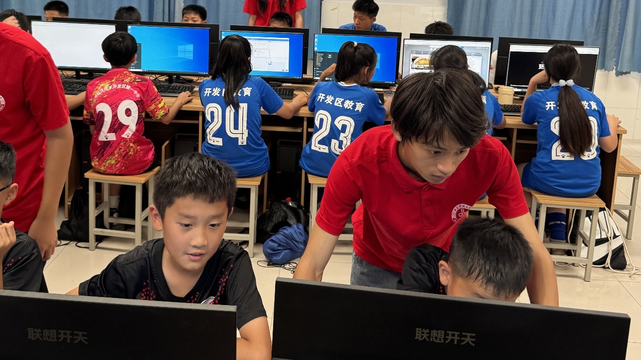 团队成员在滨州经济开发区第一中学开展信息技术实践课堂,课堂上,实践队员赵佳豪、刘姗结合所学专业知识,将编程课融入课后课堂,教给学生使用信息技术实现动画场景制作,过程中,实践队员引导学生认识到科技的重要意义,并鼓励学生积极参与实践锻炼,通过躬身实践,将红色精神转化为服务社会发展的澎湃动力。