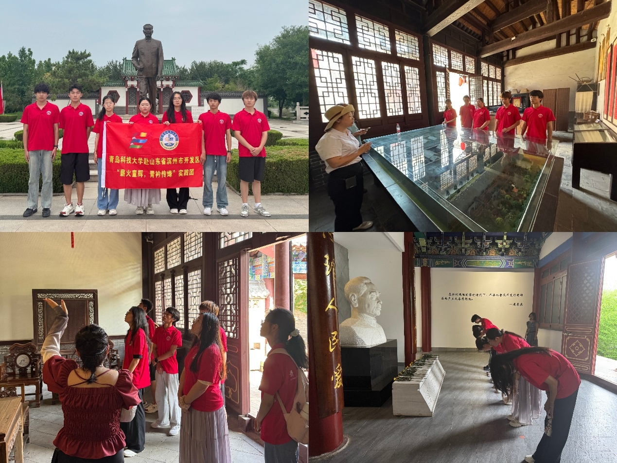 团队成员前往渤海革命老区、魏氏庄园、怀周祠等红色文化基地,以青春视角解码历史文化,用实践行动传承精神脉络。在渤海革命老区,队员们聆听战斗故事,深切感悟“不屈不挠”的老渤海精神;在杜受田故居,“一门七进士”的匾额与家训楹联,让大家在探寻清代帝师家风中,思考传统廉洁文化的当代价值;武定府衙的明清建筑与红色印记交辉,魏氏庄园的防御式构造与民俗遗存,则让队员们领略了鲁北地区的历史风貌与建筑智慧。在怀周祠内,成员们认真学习周恩来总理在革命与建设时期为国家辛勤工作的历史故事,并前往周恩来骨灰撒放地,怀着崇敬的心情向周恩来总理致敬,感受周恩来总理为了国家和人民无私奉献的崇高精神。