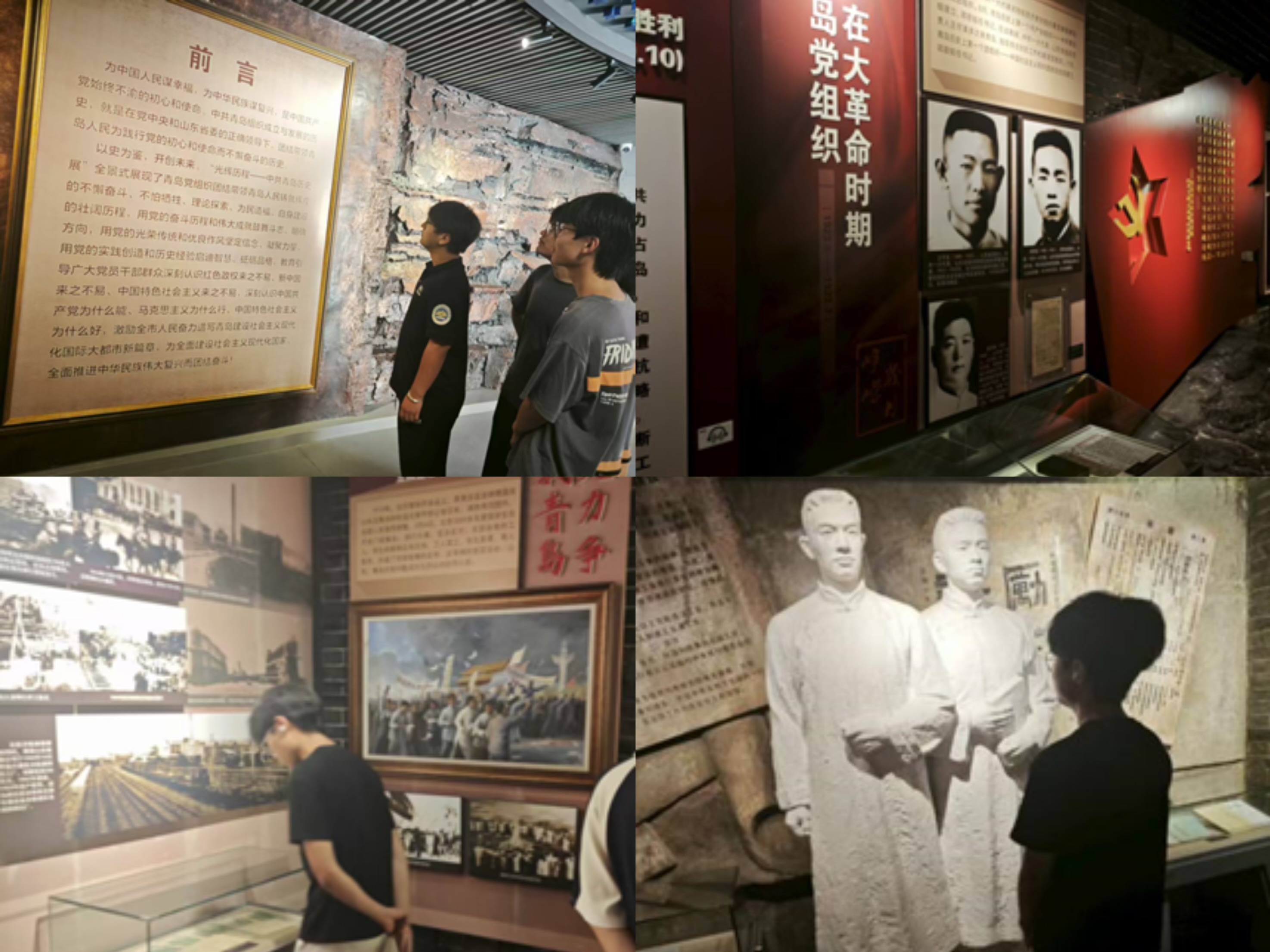 活动当日,实践团队的成员们早早集合,满怀热忱地来到纪念馆。一踏入这片红色圣地,队员们便被浓厚的历史氛围所感染。在讲解员的引领下,队员们依次参观了基本陈列展厅和专题展厅。在基本陈列展厅,通过“峥嵘岁月、艰辛探索、波澜壮阔、砥砺奋进”四个部分,大家仿佛穿越时空,亲眼目睹了青岛党组织自1923年建立以来艰苦卓绝的革命史和奋斗史。一幅幅珍贵的历史照片、一件件历经沧桑的文物,无一不在诉说着那段波澜壮阔的峥嵘岁月。队员们聚精会神地聆听讲解,不时驻足凝视,拍照记录,沉浸在对革命先辈的无限敬仰之中。
