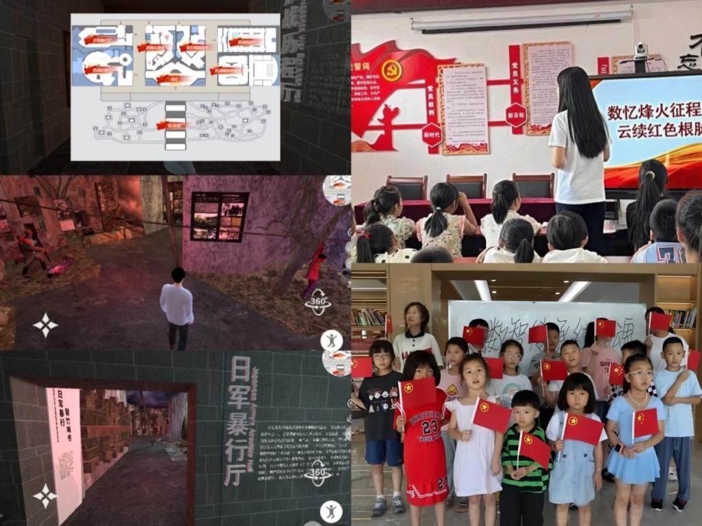 团队借助科技力量,带领小朋友“云游览”山东抗日战争纪念馆。通过360°全景漫游,孩子们“踏入”虚拟展馆,近距离观察“日军暴行厅”等展区,身临其境地感悟抗战历史。