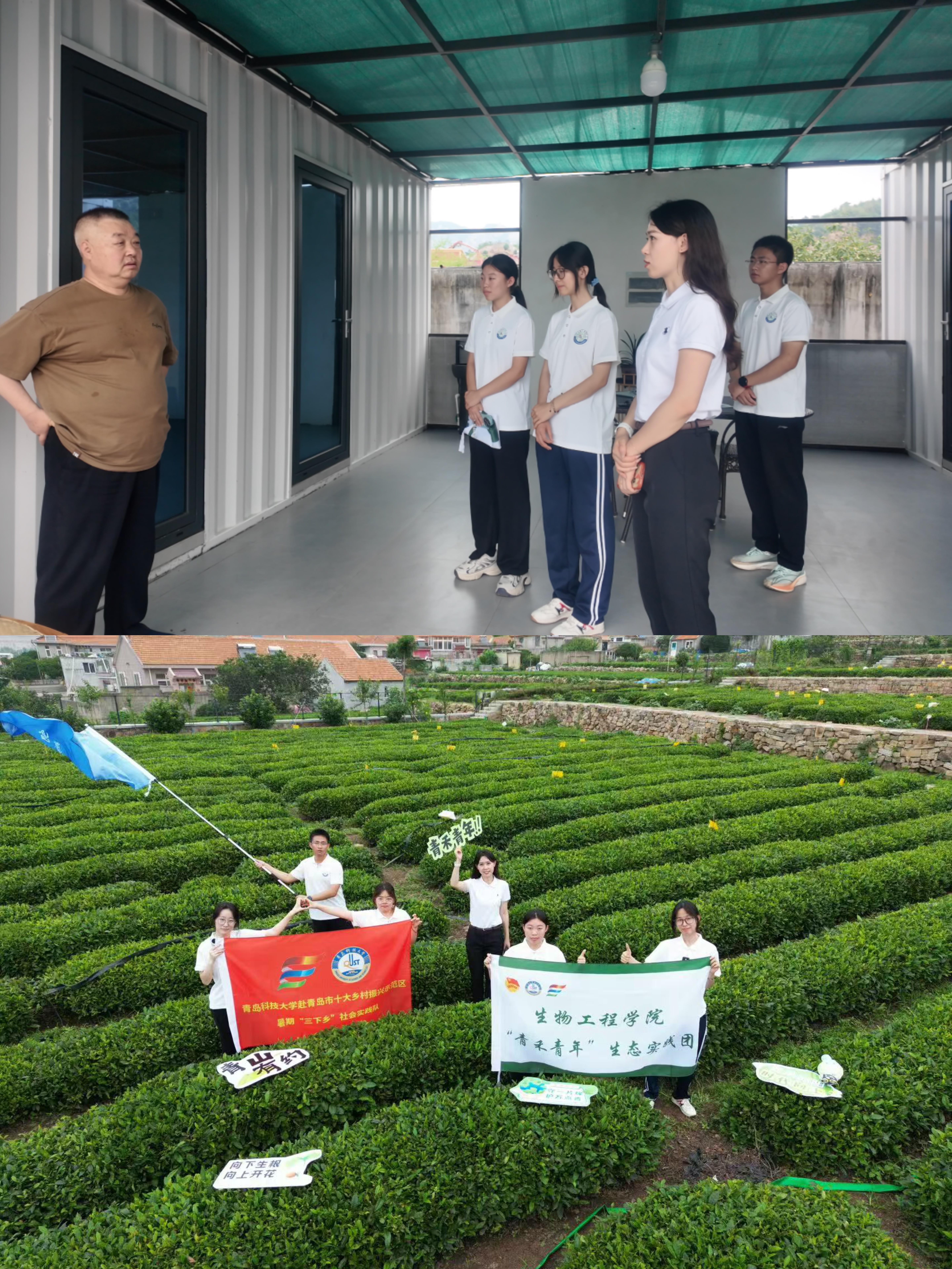 在崂山大河东村茶园,实践团深入考察生态种植实践。通过技术人员现场讲解,系统掌握阶梯式茶垄的水土保持原理、林间套种模式的生物多样性价值及虫情监测灯等绿色防控技术的应用成效。成员们走进茶田参与采摘实操,生动诠释着“以茶护山、以山养茶”的生态循环理念。从技术创新到产业价值,从生态保护到品牌塑造,大河东村的实践印证了绿色农业的可持续发展路径,为乡村生态振兴提供了可复制的样板经验。