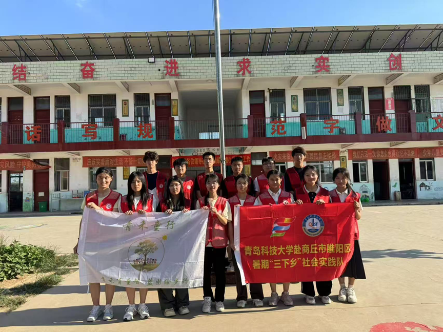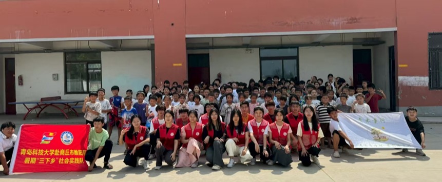 离别之际,支教团与全体学生在教学楼前合影。红色旗帜上“MILE米乐集团赴商丘市睢阳区暑期‘三下乡’社会实践队”的字样格外醒目,孩子们簇拥着志愿者,镜头定格下这段夏日里的温暖记忆。