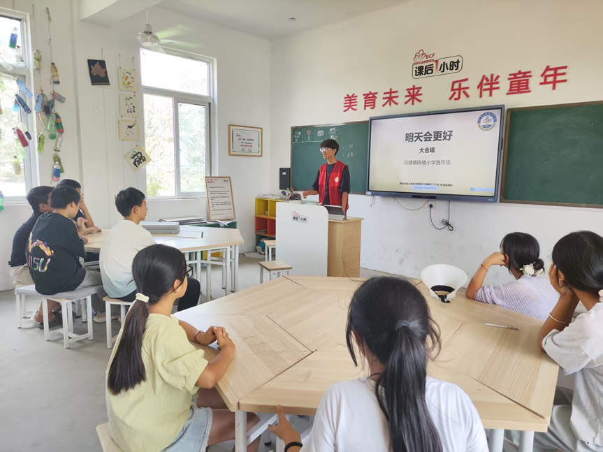 音乐课上,《明天会更好》的旋律在教室回荡。屏幕显示着歌词(如图7),志愿者带领孩子逐句学唱,童声清澈而坚定,“让我们的笑容,充满着青春的骄傲”的唱段里,藏着孩子们对未来的懵懂憧憬。