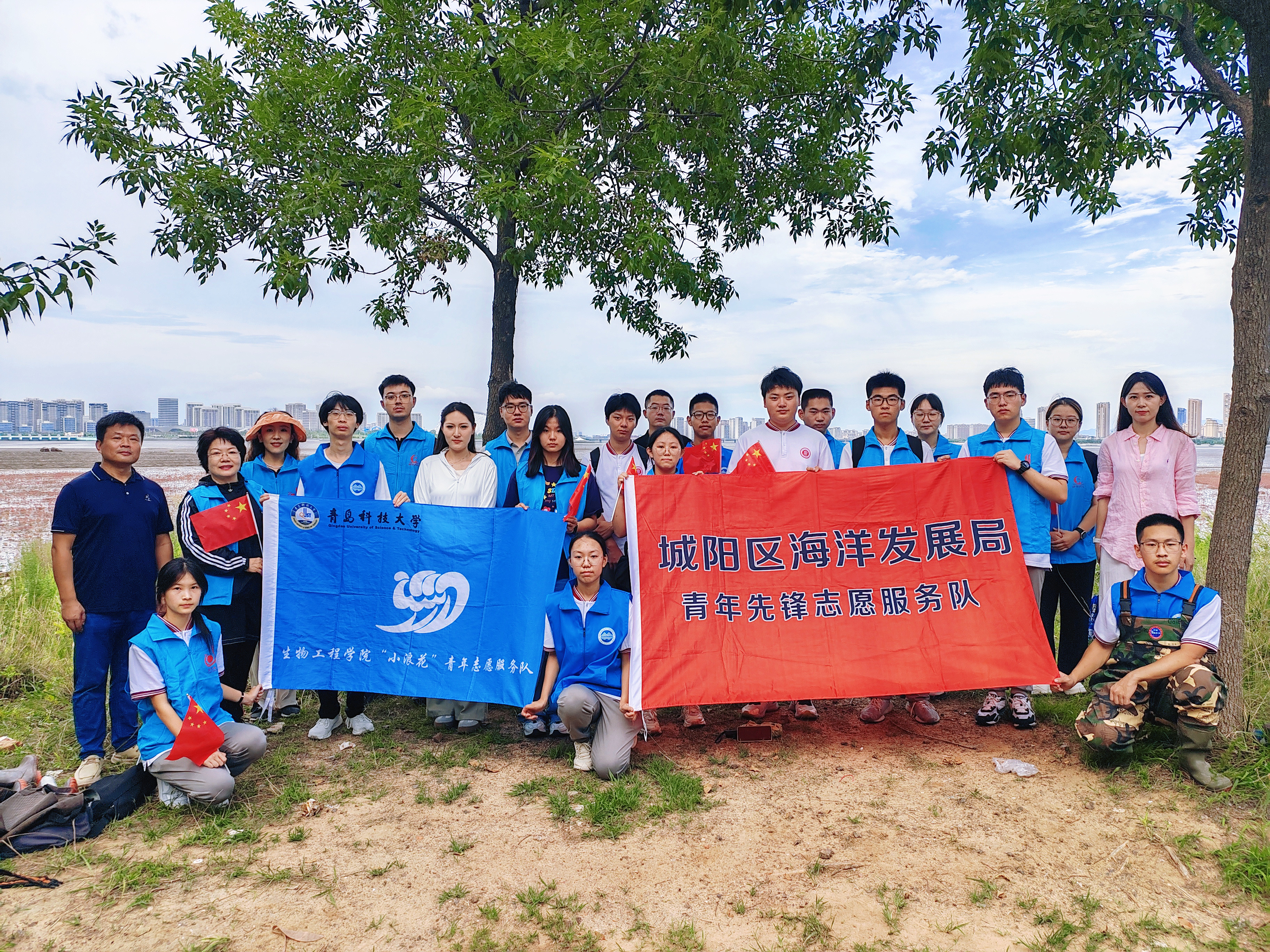 今年是“绿水青山就是金山银山”理念提出的20周年,为深入践行习近平生态文明思想、生动展现“两山”理论在海洋生态保护领域的实践成果,在我国第三个“全国生态日”到来之际,生物工程学院团委于8月14日下午与两山生态院、北海局生态中心、城阳区海洋发展局等单位在碱蓬种植修复基地举办“北岸红滩 蓝碳之约”海洋生态修复主题活动。