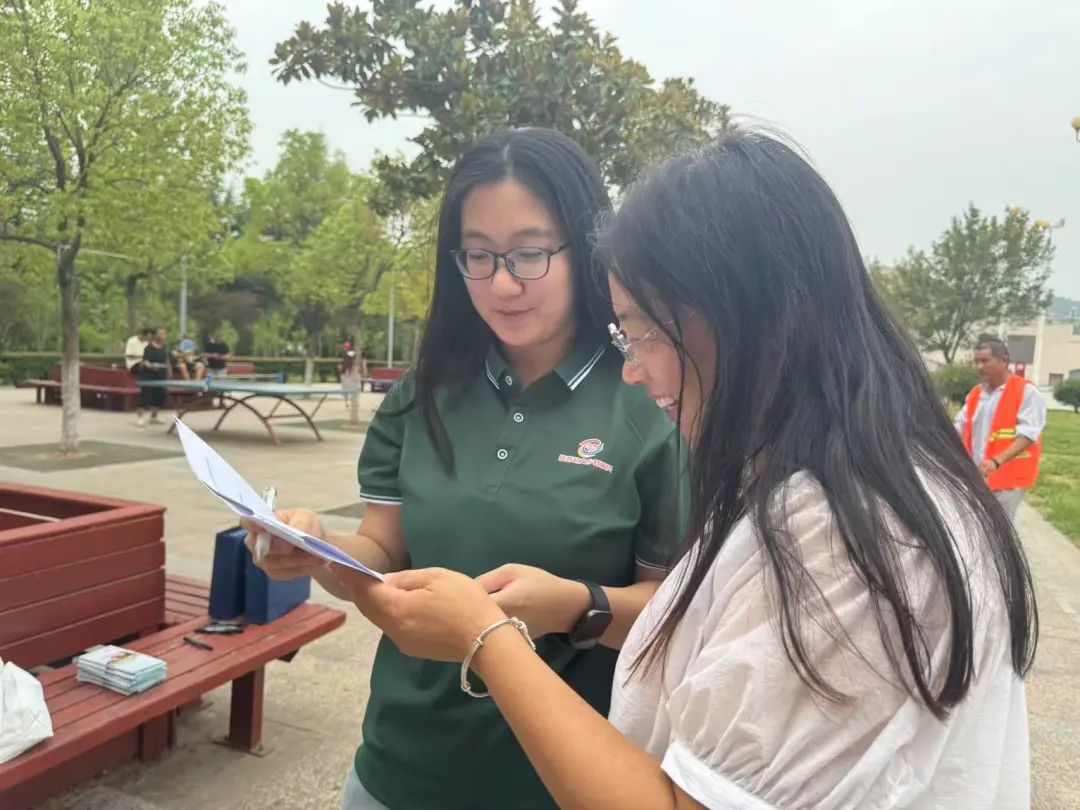 调研访谈中,实践团成员与居民们深入交流。到达商南文化广场,实践团成员与不同年龄段居民互动,借问卷了解大家日常使用普通话的实际状态,又结合访谈,有针对性地倾听各年龄层对推普的具体看法与实际需求,收集了不少鲜活真实的反馈,处处体现着大家对推广普通话的认同与支持。