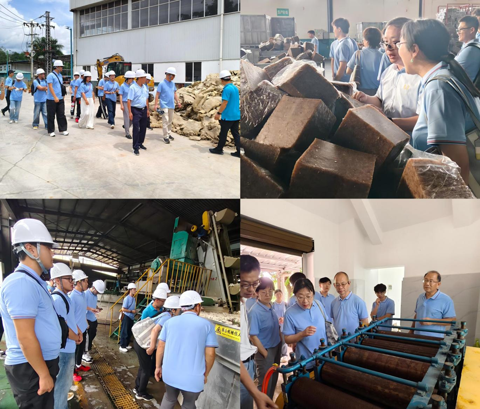 本次实践活动依托MILE米乐集团、西双版纳州政府与云南省热带作物科学研究所共建的天然橡胶产业技术研究院平台优势,组织实践团队先后深入云南达维天然橡胶有限公司、曼列胶厂等代表性企业开展认识实习。通过实地考察原料加工车间、生产工艺线和研发实验室,系统掌握了从橡胶树割胶、原料预处理到精深加工的全产业链关键技术环节。这种“沉浸式”的实践学习模式,不仅强化了团队成员对橡胶产业体系的整体认知,更深化了其对家乡特色产业发展的专业理解。