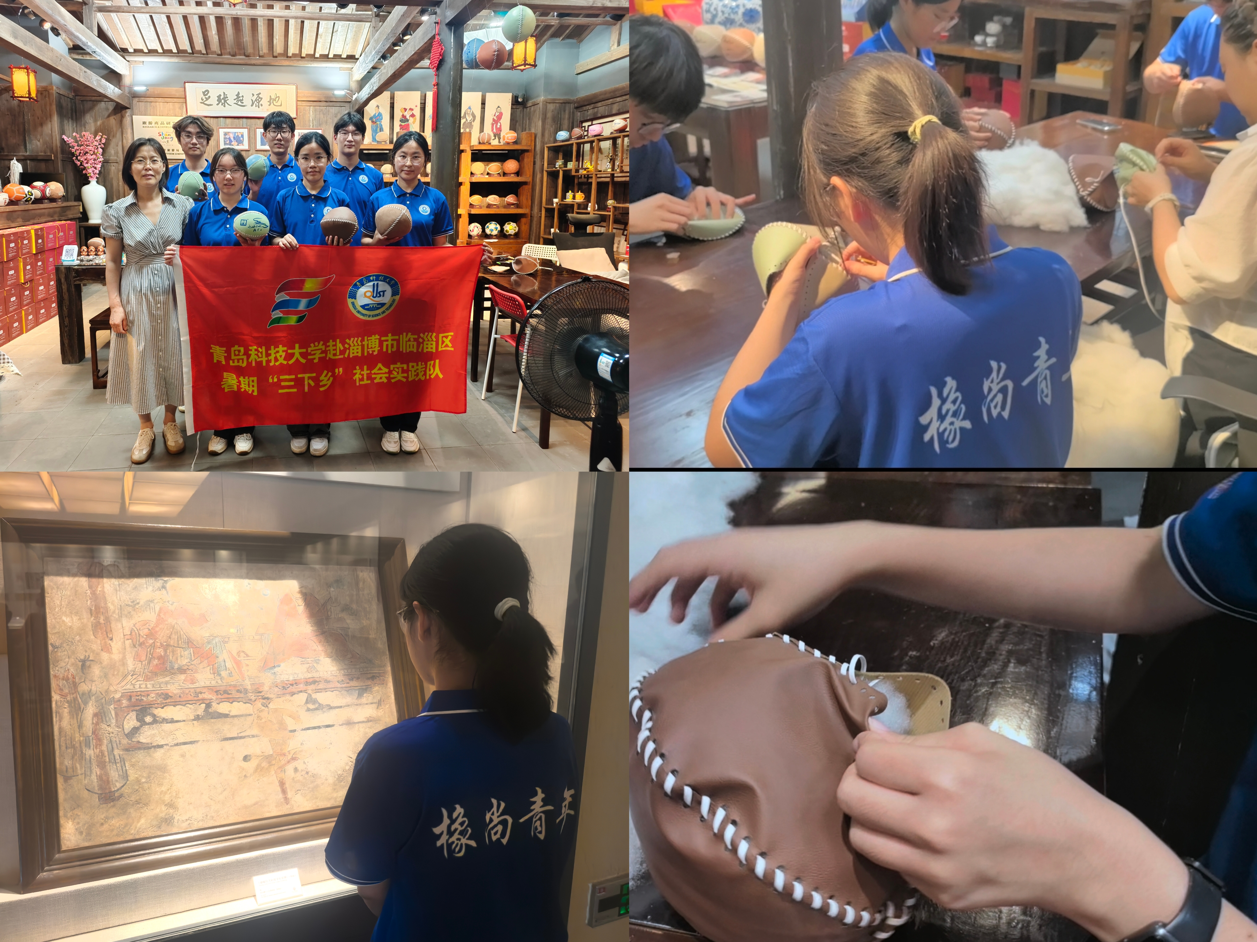 7月22日上午,队员们走进淄博临淄区蹴鞠博物馆——这座世界首座专业足球博物馆,藏着齐文化最鲜活的运动基因。蹴鞠能从这里起源并兴盛,本就是齐文化的馈赠:齐国强盛的军事根基,让这项兼具力量与技巧的运动成为军中训练方式;“通商工之业”的务实精神,又推动它从军营走向市井,成了全民热爱的活动。踏入一楼大厅,历代蹴鞠串联成的“岁月长河”扑面而来,从早期的简易鞠壳到后来的彩绣鞠,每件都印着齐地智慧。最动人的是制鞠体验:在指导下穿针引线、填充棉絮时,指尖触到布料的瞬间,忽然懂了齐人“重工巧”的深意——就像当年齐国工匠不断改进工艺,我们手中的针线也在延续这份“务实创新”的精神。当自己缝制的蹴鞠成型时,大家真切感受到:齐文化从不是遥远的故事,它藏在蹴鞠的纹路里,也在我们动手传承的温度中。淄博的实践仍在继续,传承齐文化的热忱没有冷却,关爱孩子们的行动更没有停歇。博物馆里的齐风讲解还在回响,漆扇上的色彩会继续晕染,蹴鞠里的齐地智慧将不断探寻;而牵着孩子们的手、陪他们感受世界的温暖,也始终在路上。齐文化的传承不止,心底的关爱不停,每一步都是新的开始。