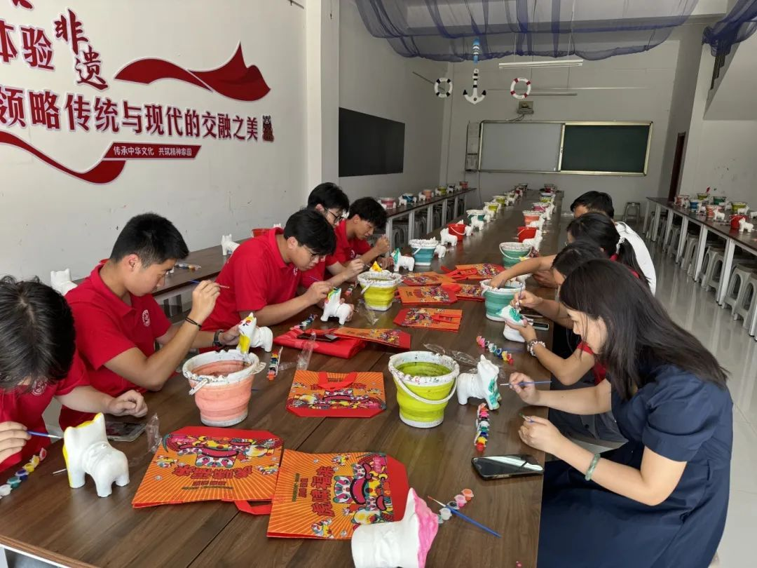 文化传承是此次实践的另一重点。在红高粱艺博园,实践队详细了解了高密非遗“泥老虎”的制作技艺与文化内涵。在国家级非遗传承人聂老师的悉心指导下,队员们亲手体验了这一传统工艺的魅力。“取本地聂家庄泥胚经‘三揉三晒’至细腻坚韧,手工捏制虎头虎身轮廓,用竹刀精刻眉眼、胡须等花纹,晾晒定型后以红、黄、绿等鲜亮色彩涂绘,最后装上弹簧机关...”每一步都凝聚着匠人的智慧与心血。
