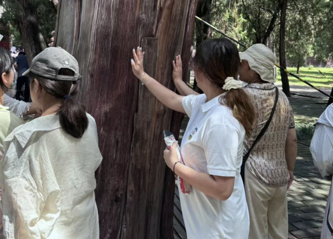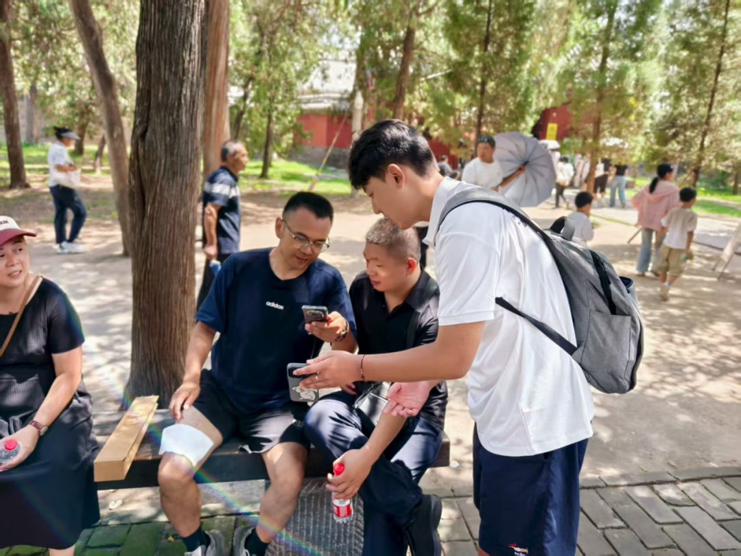 在三孔景区,当成员们看到有游客对“五柏抱槐”的奇景充满好奇,便主动上前,生动细致地为游客讲解景观背后的故事,以轻松互动的方式普及齐鲁文化知识。其间,成员们精心设计并发放了《儒家文化认知与传承》调查问卷,旨在更精准地掌握不同群体对儒家文化的认知情况以及感兴趣的形式,为后续优化文化普及活动、形成详实的实践报告收集第一手资料,以创新的形式推动齐鲁文化的传承与普及。