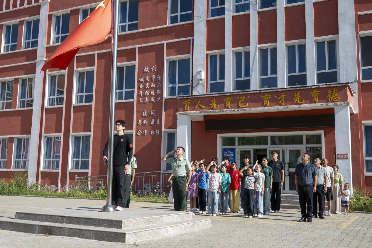 实践期间恰逢八一建军节,实践队中的退役军人和国旗护卫队成员为小学生们举行庄严的升旗仪式,并开展爱国主义主题教育,讲述建军历史、国防知识和新疆生产建设兵团的奋斗故事,引导孩子们厚植家国情怀。