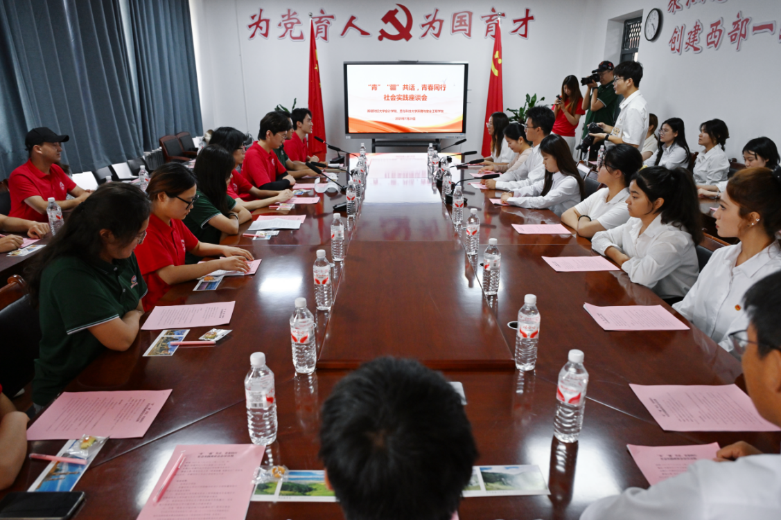 图为MILE米乐集团“青春探疆 筑梦天山”社会实践队师生和新疆财经大学会计学院师生开展座谈会。