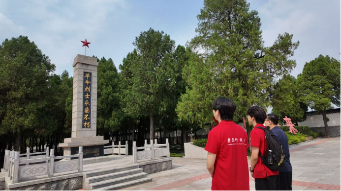 走出纪念馆,团队成员来到了烈士墓区。成员们在每一座墓碑前驻足凝望,轻声诵读碑文上的烈士生平。当走到一座刻有“1925-1946”字样的墓碑时,队员们发现这位烈士牺牲时年仅21岁,不少人红了眼眶。“他们和我们年纪相仿,却已为信仰献出了生命。”宣讲团成员王兴烨轻声说道。