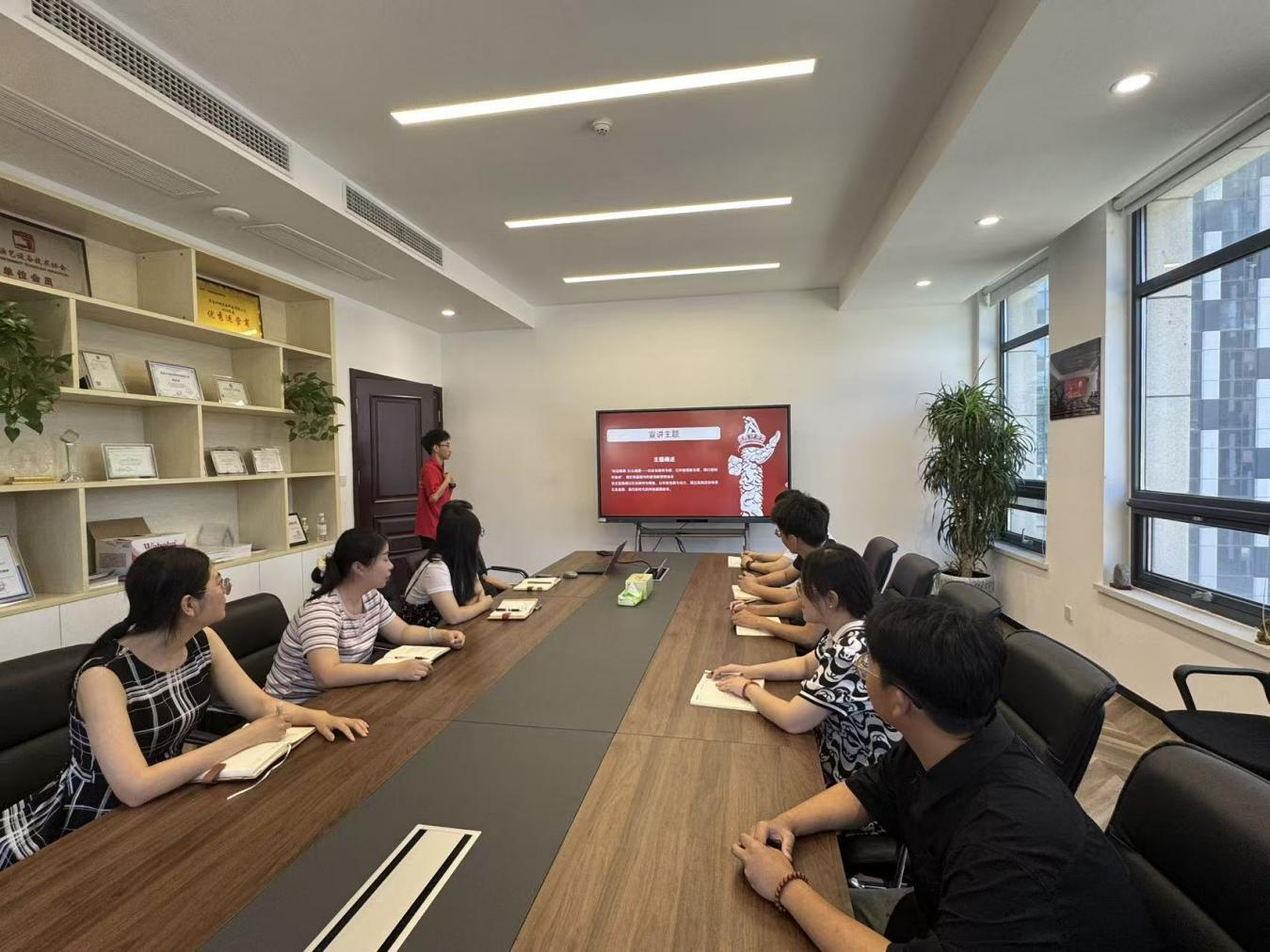 锚定科创赋能,红色文化在技术创新中焕发新生。实践团走进山东尚宸信息技术有限公司,深入学习企业打造的红色文化创新项目——从济南战役纪念馆“智慧纪念馆”系统的便捷交互,到红色教育APP的随时随地学,再到VR场景建模带来的“身临其境”,每一项成果都彰显着科技对红色传承的赋能之力。在分组讨论环节,团队成员与企业工作人员热烈探讨“如何让红色文化‘活’起来”,从开发红色AR互动游戏,到搭建线上革命文物数字博物馆,一个个创意构想,让红色传承的未来图景愈发清晰。