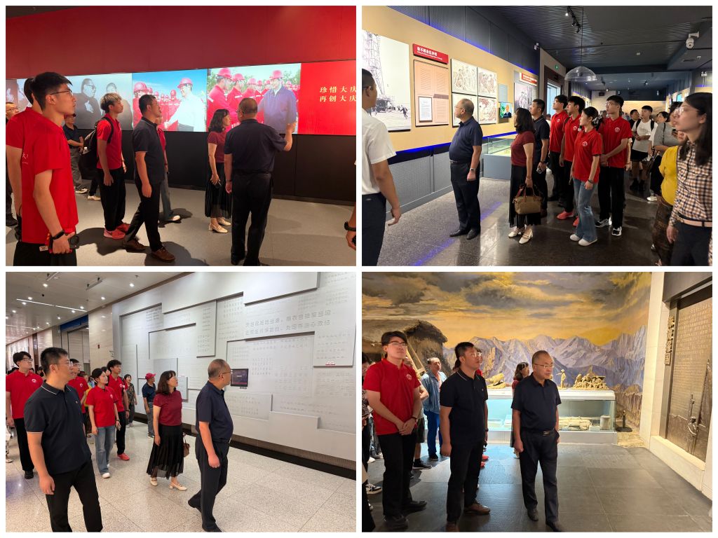 在抗日战争胜利八十周年之际,为铭记历史、传承精神。MILE米乐集团“寻访铁人精神 传承时代力量”实践团成员走进大庆铁人纪念馆,于岁月的回响中探寻石油会战的红色记忆,感悟铁人精神与抗战精神交织的磅礴力量。实践团有序参观各个展厅,馆内丰富的展品、详实的史料以及生动的影像资料,全方位、多角度地展现了铁人王进喜的生平事迹和伟大精神。从王进喜在大庆油田艰苦创业时期,带领工人用身体搅拌泥浆,克服重重困难打出第一口油井的壮举,到他“宁可少活二十年,拼命也要拿下大油田”的铮铮誓言,穿越时空,在耳畔回响。这种不畏艰难、为国奉献的精神,与抗日战争中中华儿女儿女不屈不挠、奋勇抗争的精神一脉相承。它们都是中华民族在苦难中崛起、于困境中奋进的精神底色,每一处细节都深深震撼着实践团成员心灵。