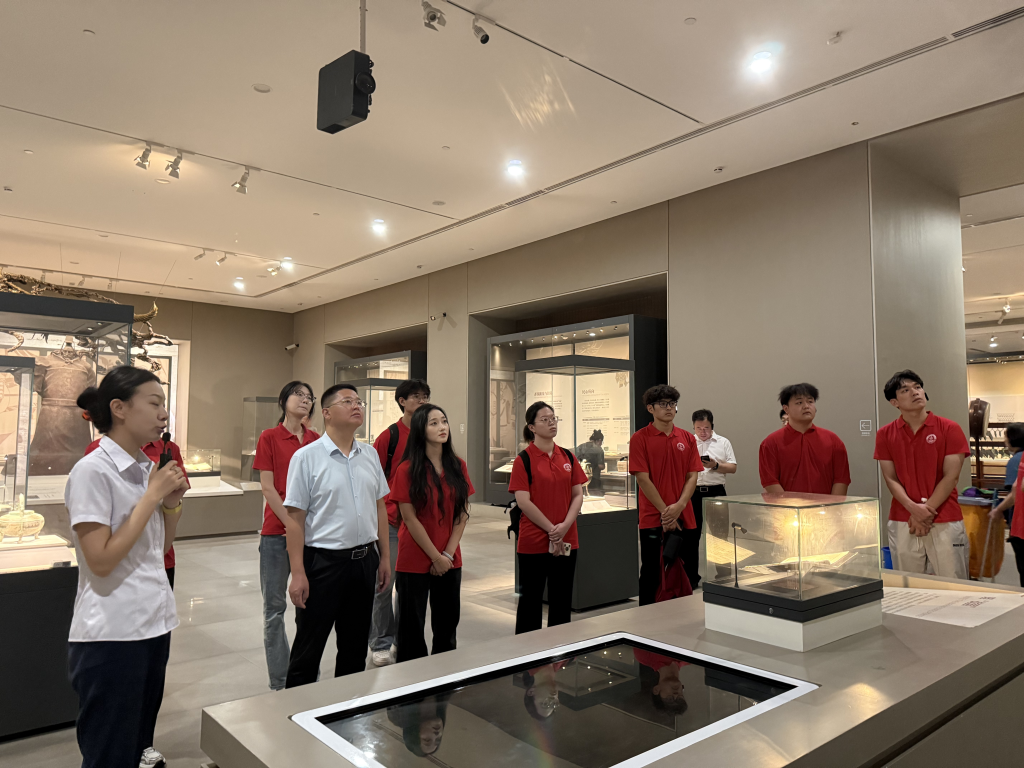 实践团队走进齐文化博物馆、中国古车博物馆、管仲纪念馆等文化地标场馆,众多珍贵文物静默诉说着齐国故都的沧桑巨变,从政治风云到经济繁荣,从文化交融到社会变迁,每一幕都生动再现了这座历史文化名城的辉煌篇章。齐文化博物馆中,刻画太公垂钓、桓公称霸、孙武著书的浮雕以金石之力勾勒出齐国群英像;一件件青锈斑驳的青铜器,勾勒出“张袂成阴,挥汗成雨”的盛世图谱。在中国古车博物馆的地下展厅,战马骨骼仍保持着奋蹄的姿态,车轮辐条虽已朽坏,却能遥想见当年驰骋沙场的疾迅。一幅幅生动史料、一件件珍贵文物,展现民族精神的生生不息,书写中华文明的历久绵长。穿过历史烟云,实践团队近距离体悟“开放、包容、务实、进取”的齐国文化精神,更加真切感受到了我国历史的波澜壮阔,在历史中汲取文化力量、坚定文化自信。