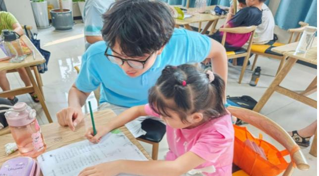 鲁文化从不囿于传统,更含“格物致知”的探索精神。实践团专为孩子们设计“趣味科学课”,淀粉遇碘变蓝写字、大象牙膏、焰色反应等实验活动,激发了孩子们的科学探索欲;针对部分孩子的学业难题,团队成员开展“一对一辅导”,针对数学公式、语文作文、英语发音等问题耐心解答,助力孩子们解决学业难题,培养学习兴趣与自主学习能力。